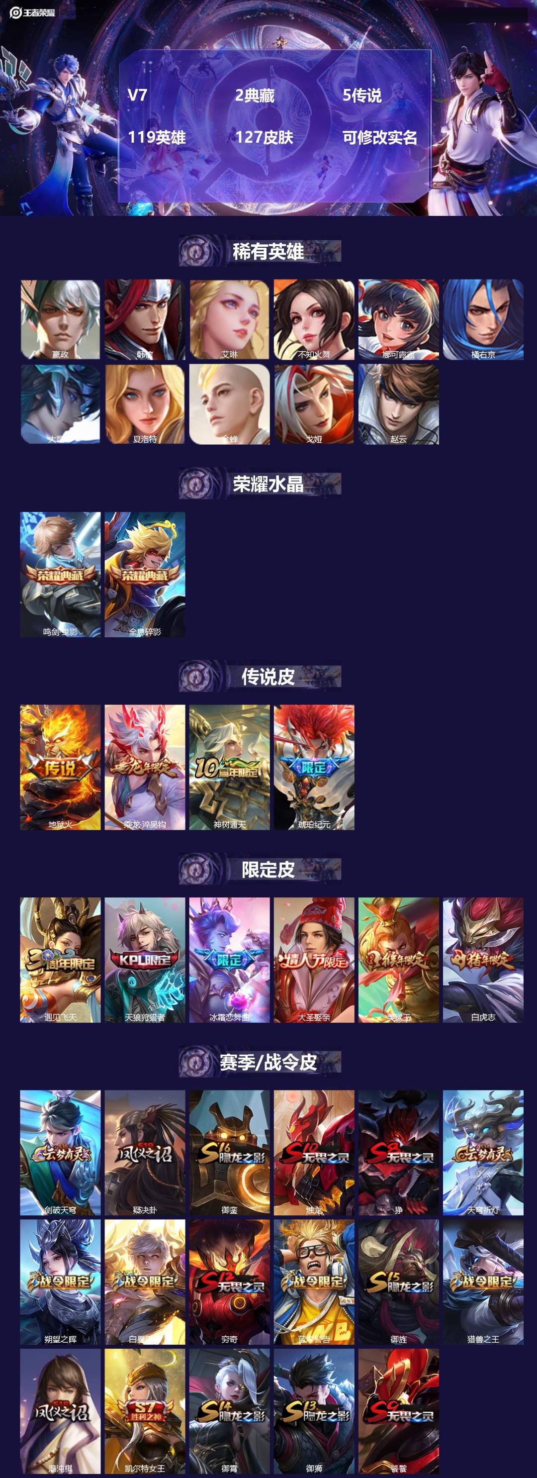 V7 2典藏 5传说 119英雄 127皮肤 可修改实名 【稀有英雄】大司命,