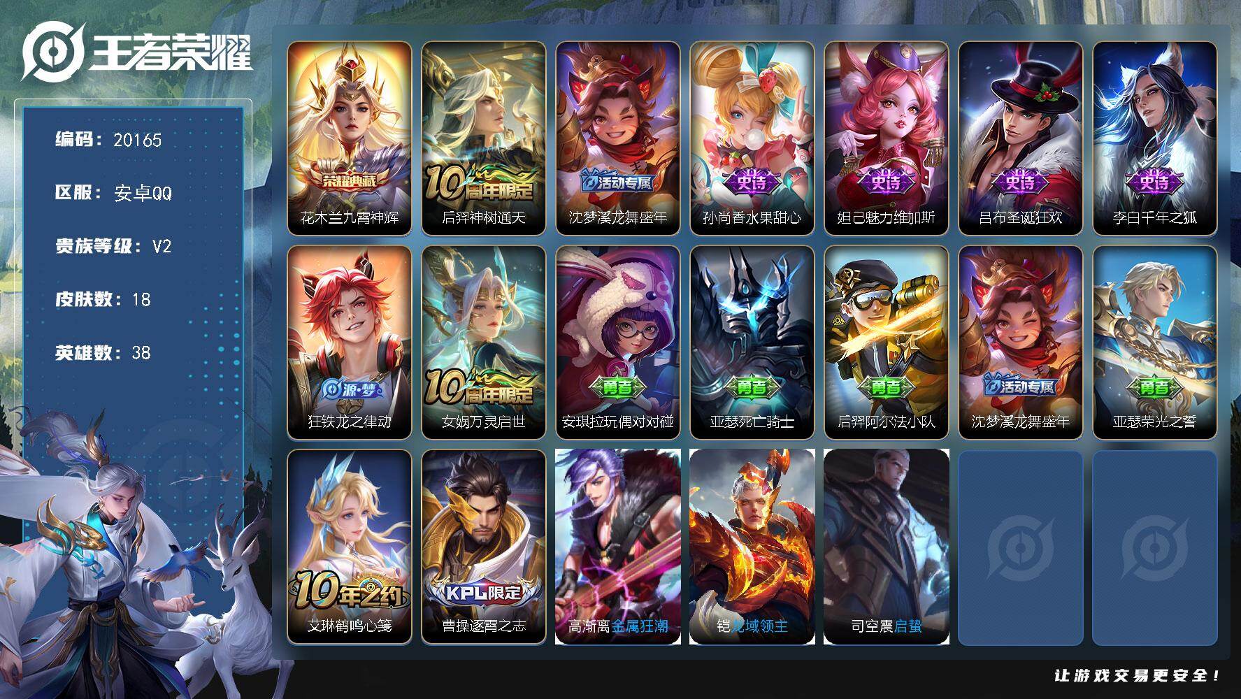 V7 12传说 126英雄 299皮肤 可修改实名 【英雄全皮】空空儿全皮,