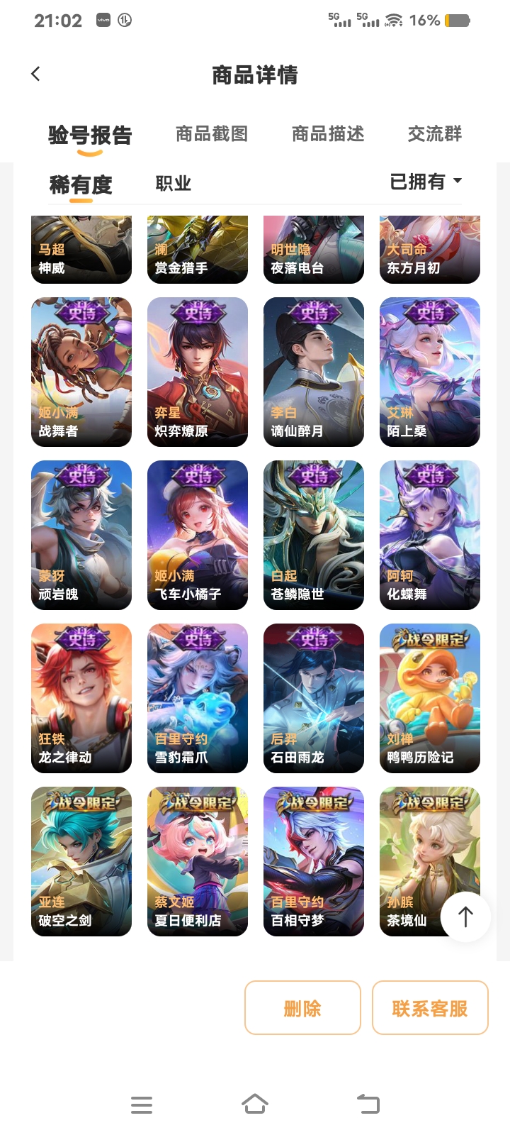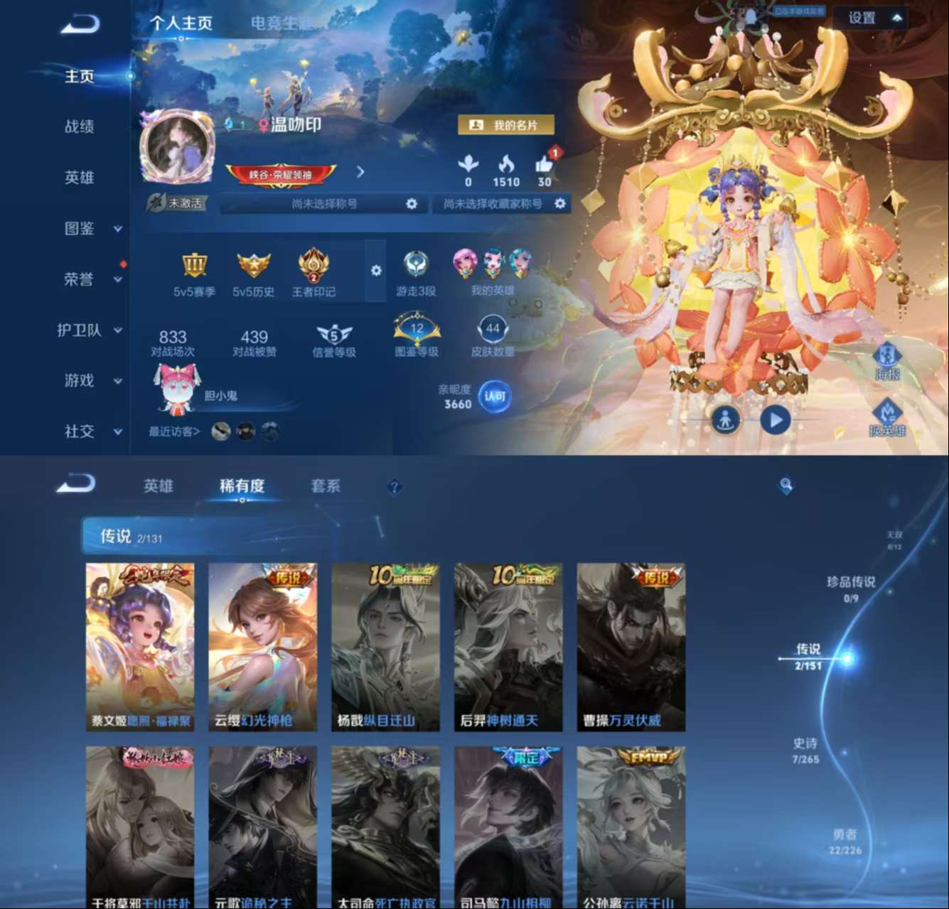 安卓Q-V1-永恒钻石IV段位-128英雄-453皮肤-4典藏皮肤-1典藏英雄