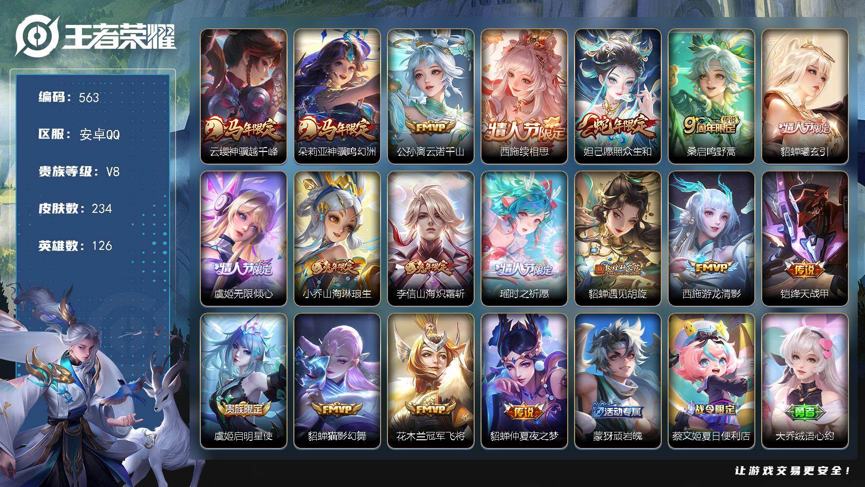 可换绑 【高质量精品号·马限全套·夺宝值316·典藏花木兰·年限李信·蛇限澜·