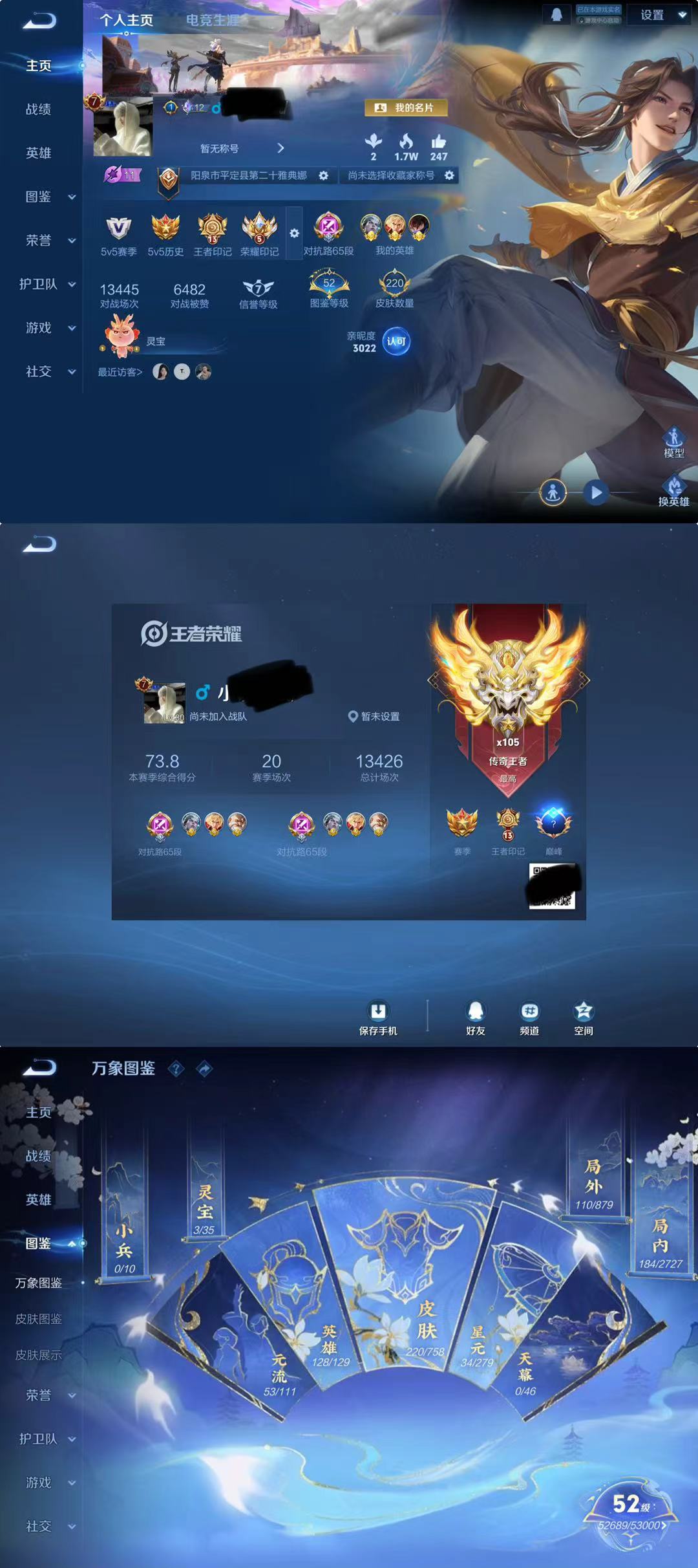 实名: 可修改 贵族等级: V6 英雄数: 104 皮肤数: 114 珍品传说