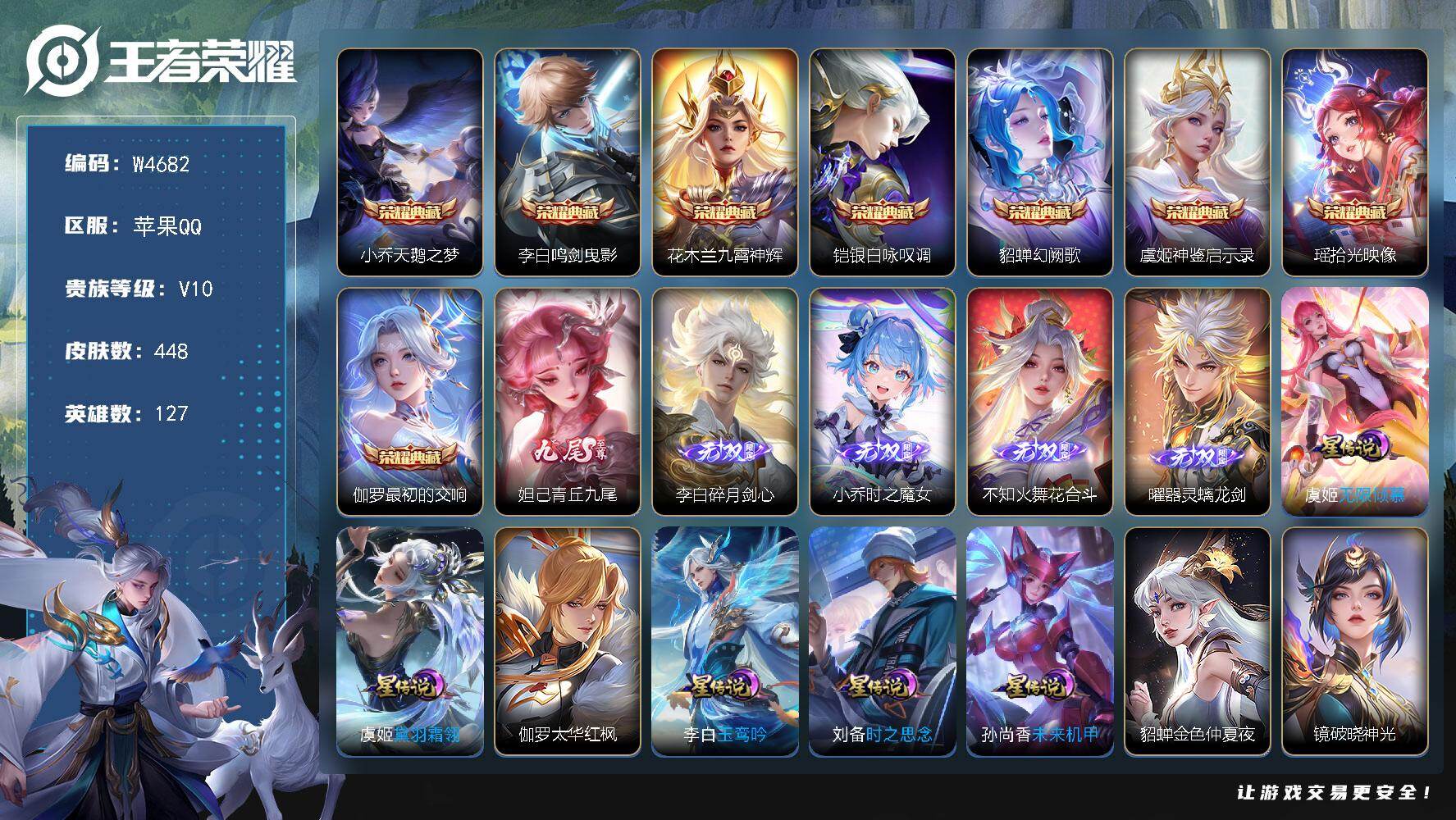 【W4682】苹果Q区-无二次-贵10-127英雄-448皮肤-8典藏-5无双