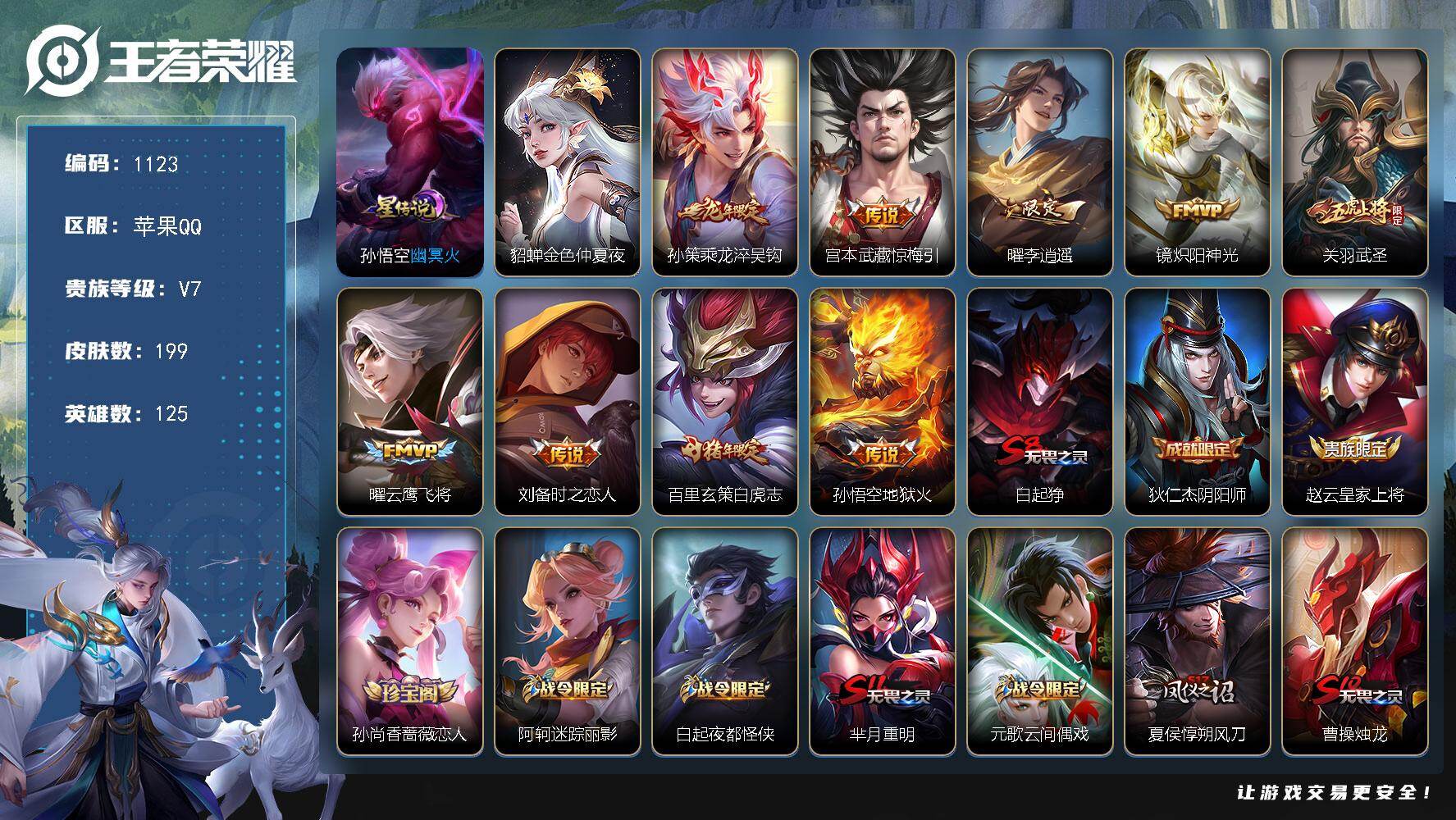 2星传说苹果Q-V7-125英雄-199皮肤-9传说-39史诗【英雄全皮】: