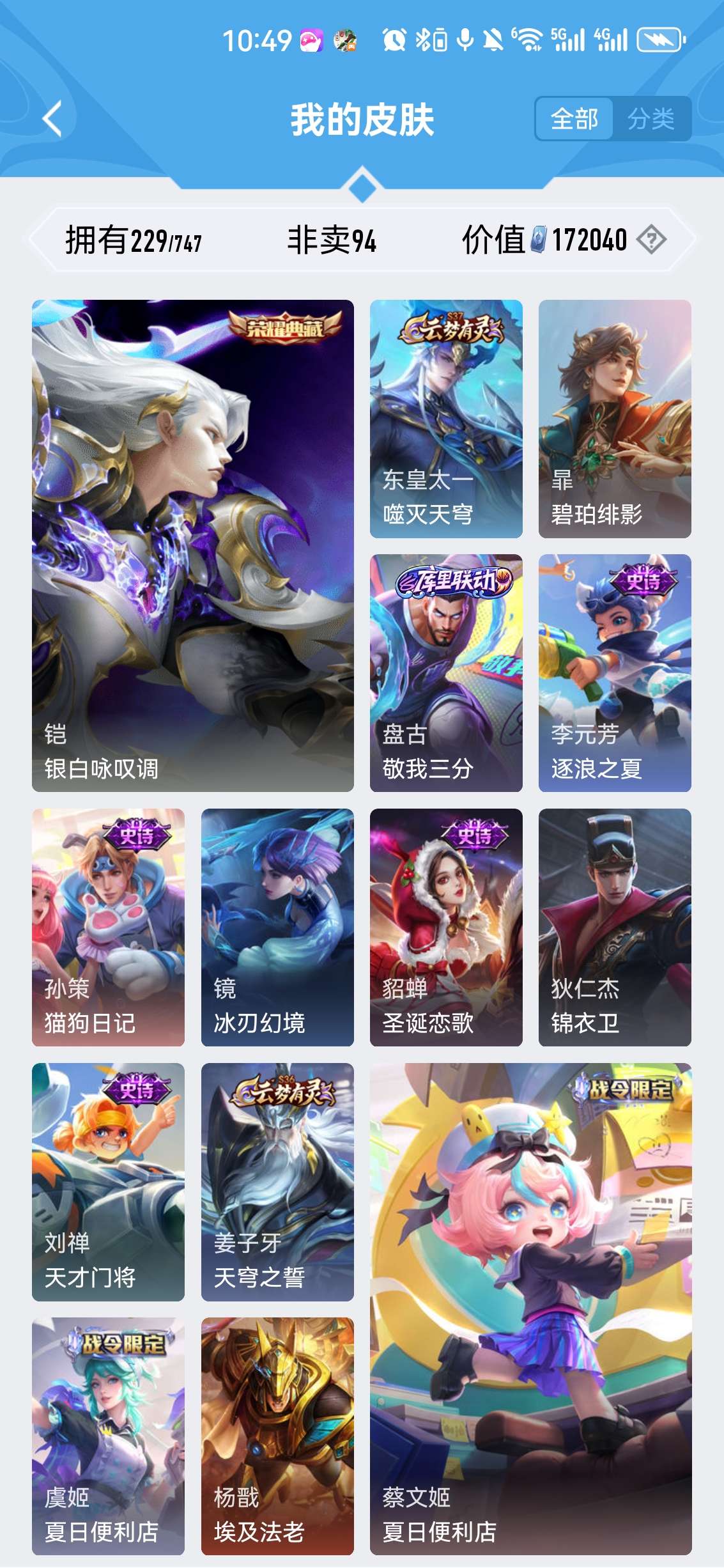 安卓微信-1典藏-12传说-229皮肤-126英雄-至尊星耀-不知道咋说,自己看吧