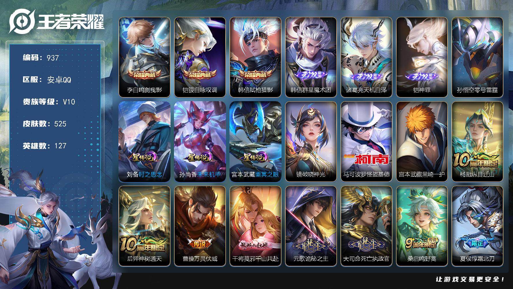 安卓QQ-5典藏-44传说-2无双-404皮肤-128英雄-最强王者-王者荣耀v9(差三百V10)女玩号(皮肤太多一个一个点太麻烦了,就没点完)