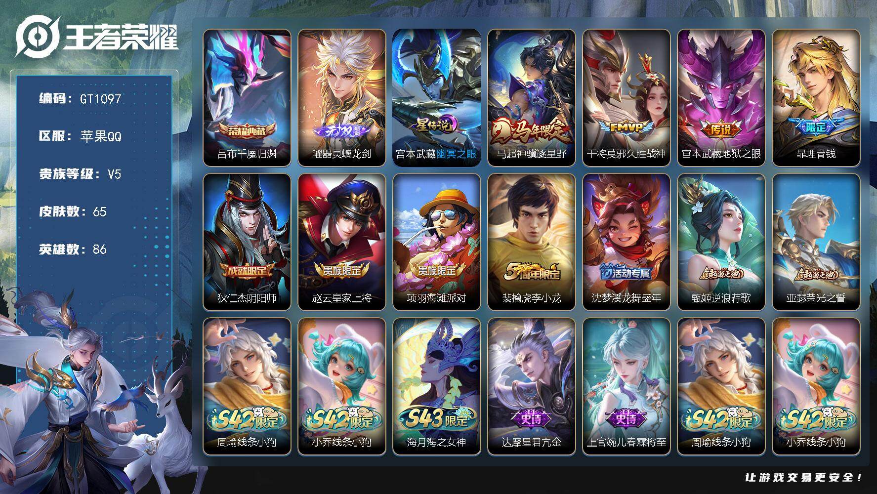 可换绑【精品v9多限定号·兔年全套·李白妲己无双·怪盗基德·蛇年女娲澜·曦玄引