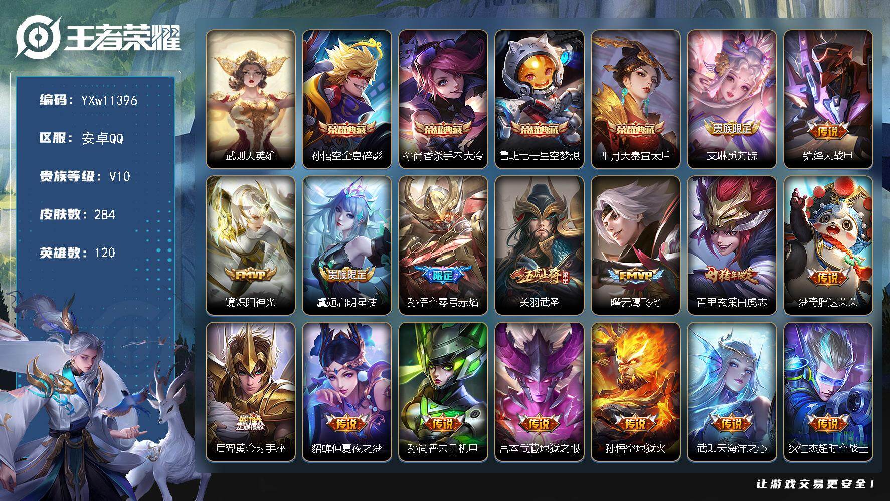 【1珍品8传说可秒换绑】安卓QQ-81英雄-66皮肤【珍品