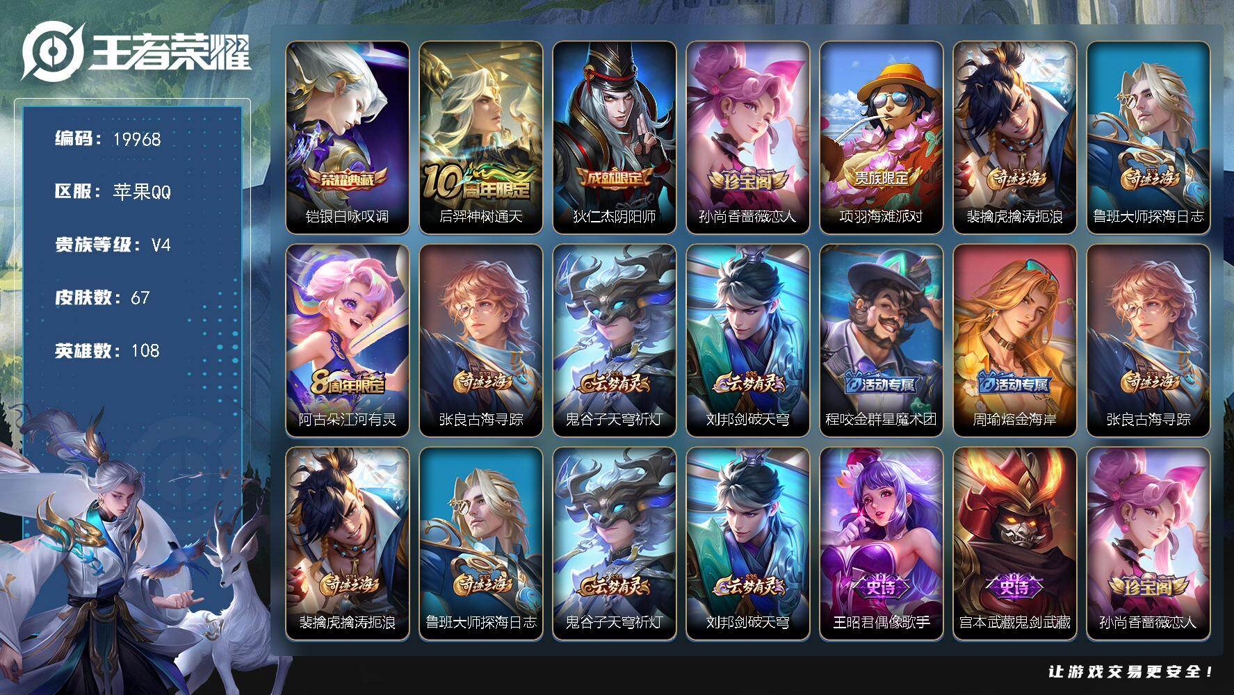 可换绑【V10精品号 赵云全皮 王昭君全皮 蔡文姬全皮 生肖限定36个 8典藏