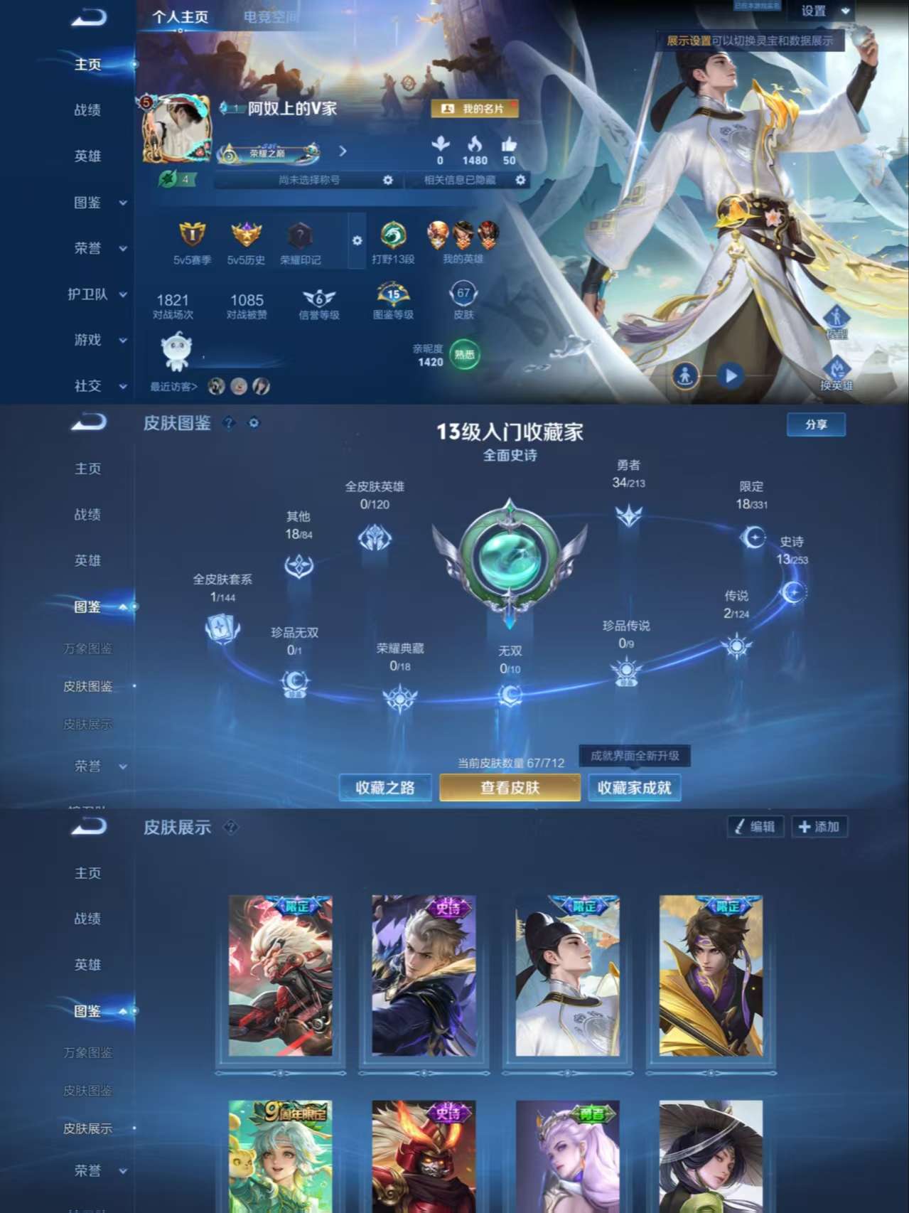 安卓Q-V8-至尊星耀I段位-126英雄-179皮肤-1典藏皮肤-3无双-4珍