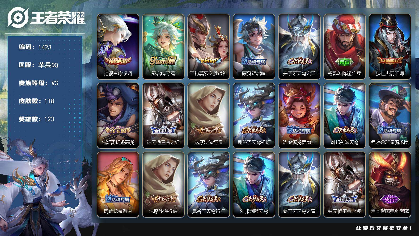 【精品小号 铠银白咏叹调 银标阿珂 】苹果Q-V3-最强王者段位-123英雄-