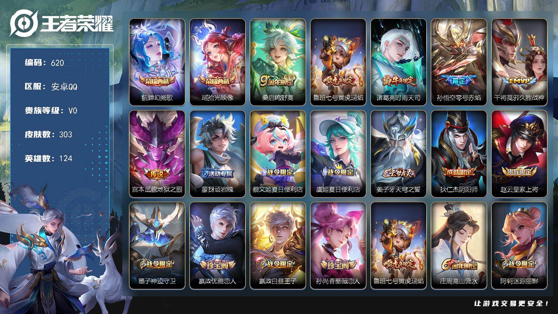 安卓Q-V0-永恒钻石IV段位-124英雄-303皮肤-2典藏皮肤-6传说-7