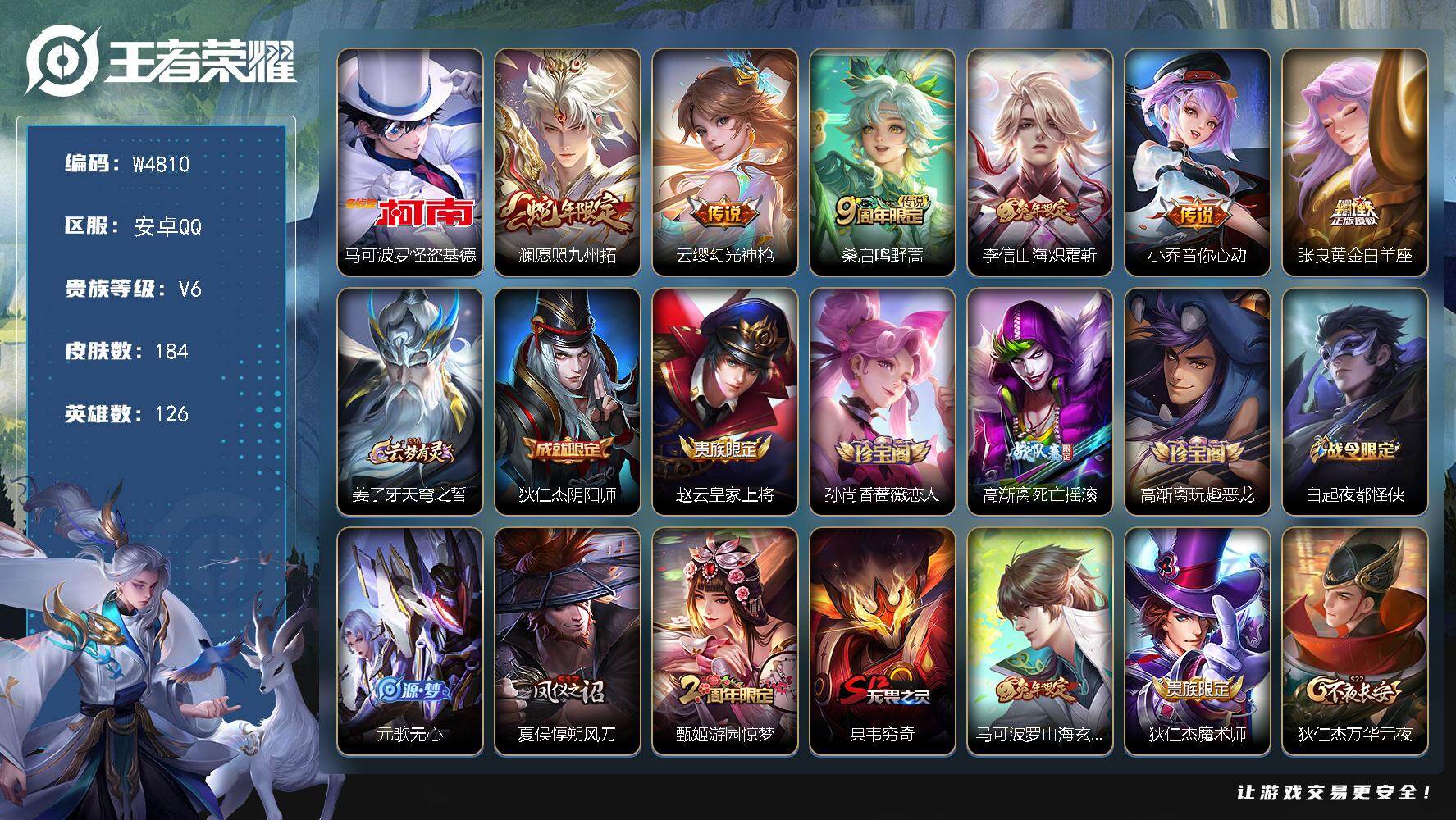 【W4810】安卓Q区(账号有限制)-无二次-贵6-126英雄-184皮肤-1