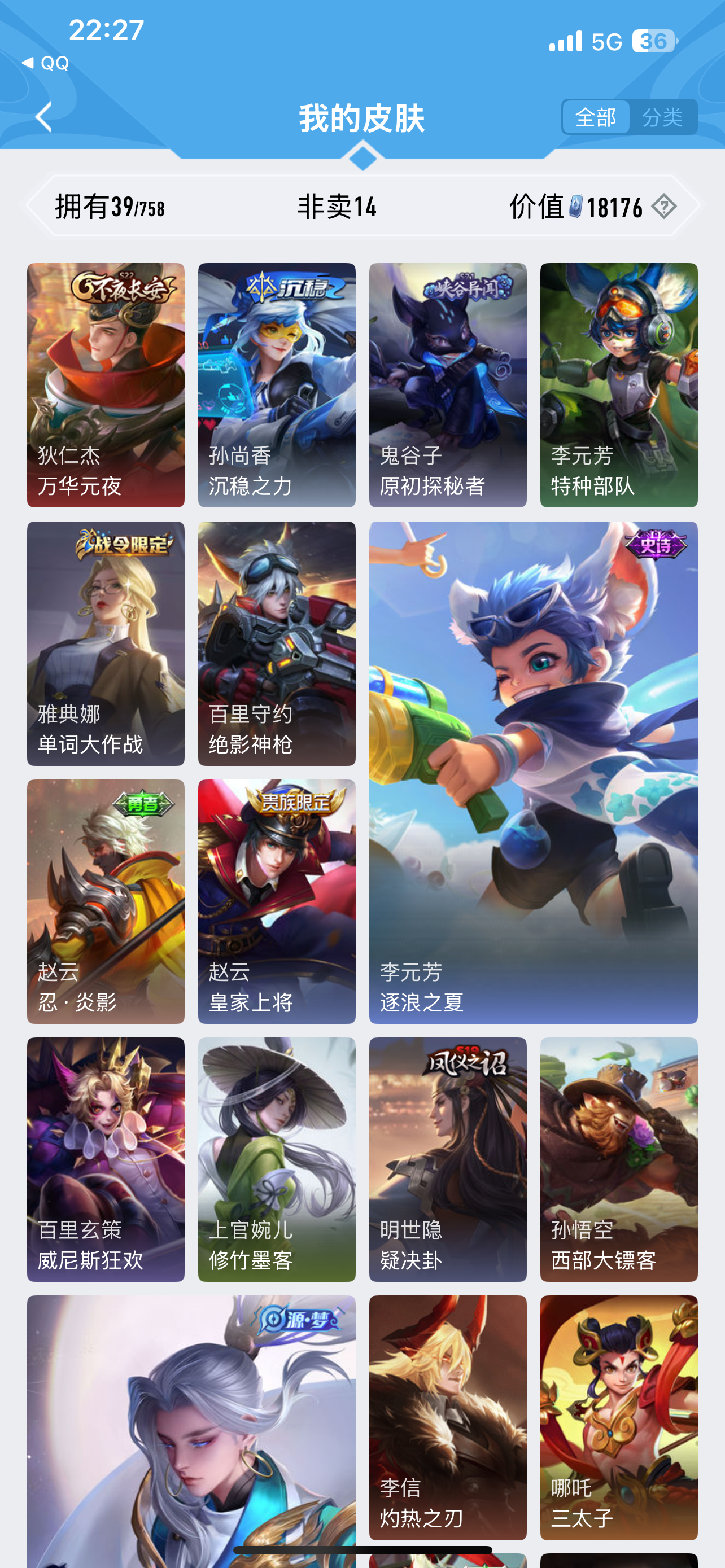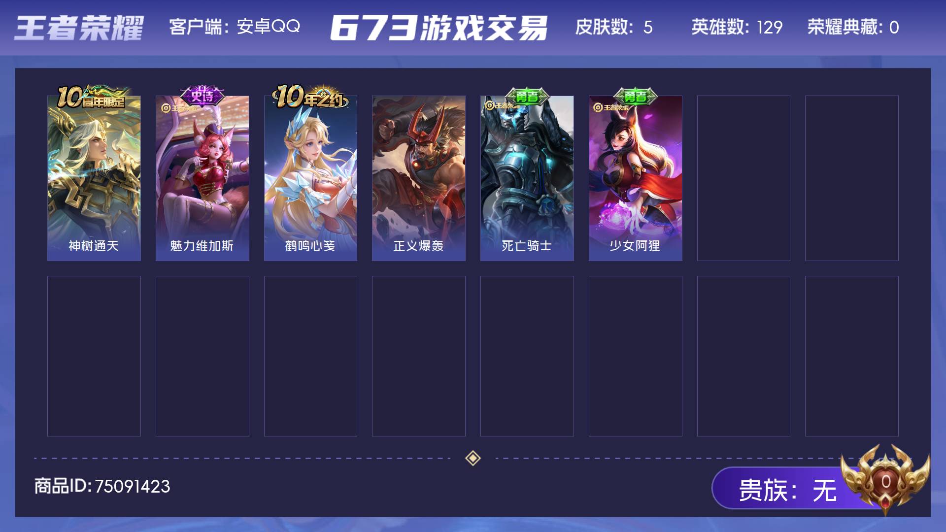 皮肤167 英雄114 传说6 其他皮肤70-贵族7账号 刚满18也不想玩了