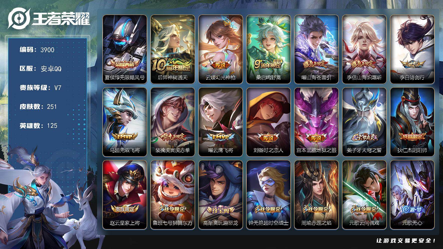 安卓Q-V7-至尊星耀I段位-125英雄-251皮肤-1典藏皮肤-11传说-6