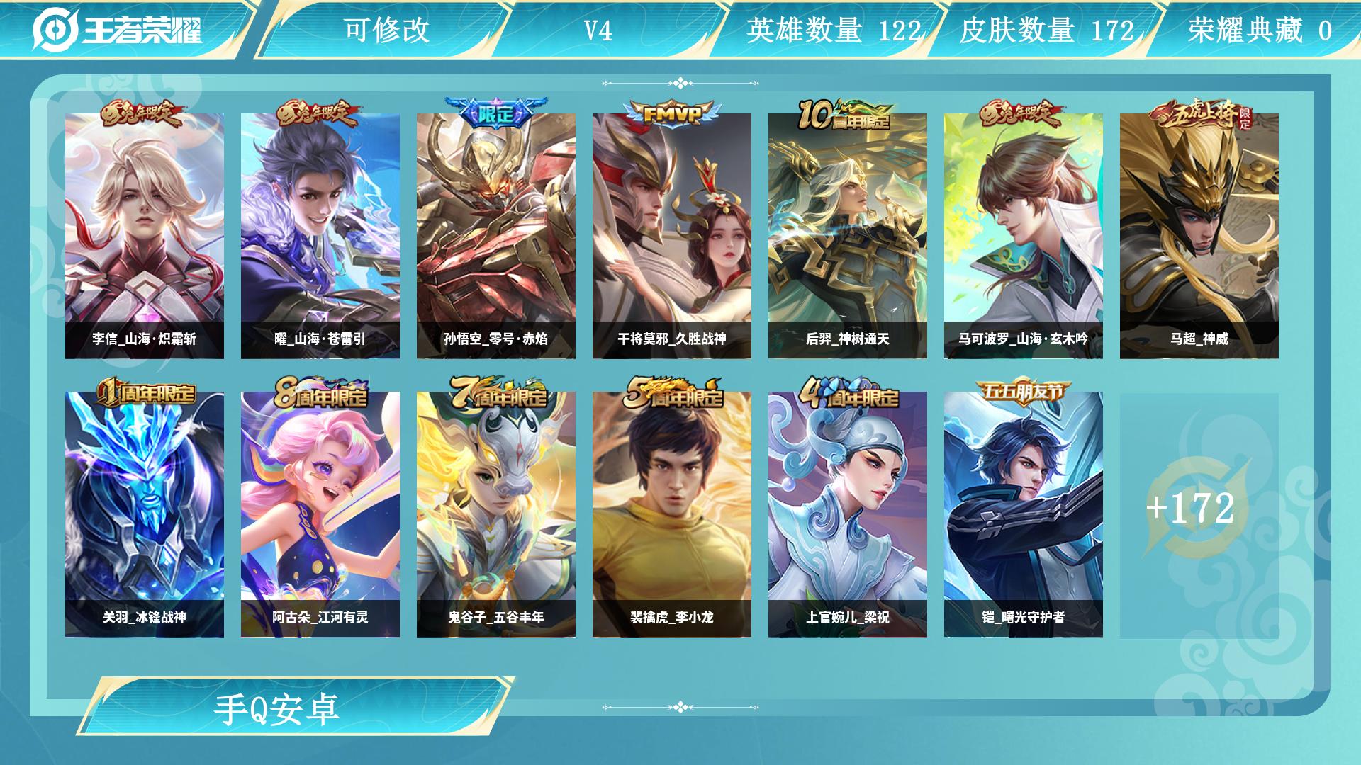 V8 2典藏 1珍品无双 6珍品传说 22传说 126英雄 384皮肤 可修改实