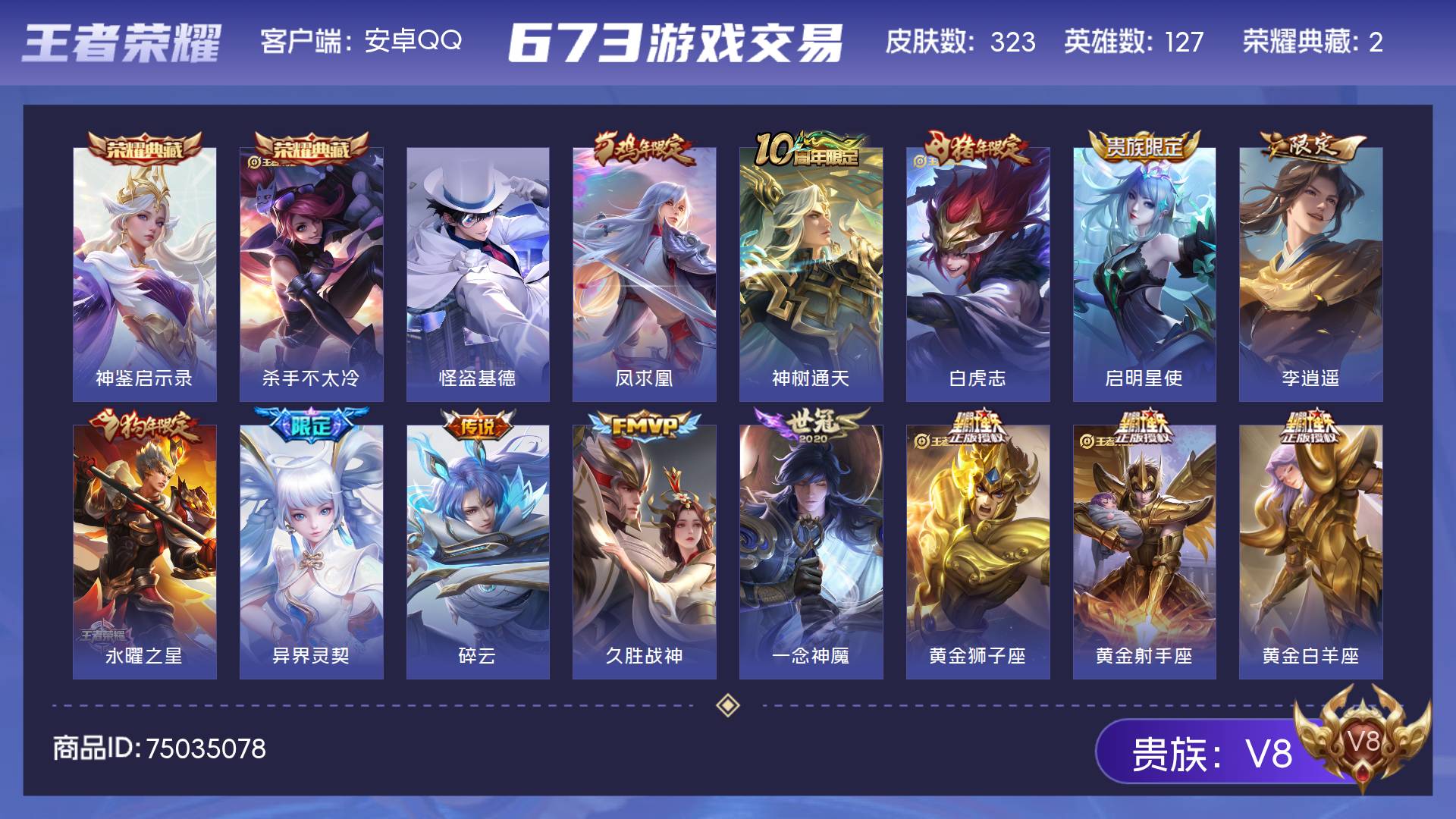 皮肤323 英雄127 非凡王者 荣耀典藏2 珍品传说1 传说16 其他皮肤138-出售青春,可以小刀.