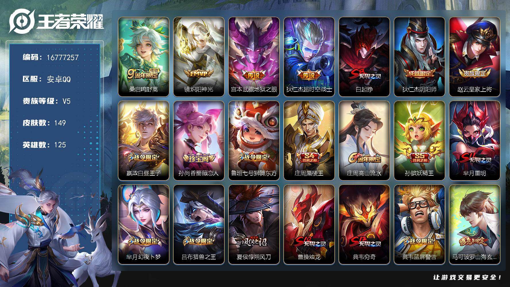 【16777255】贵族等级6/传说皮肤数量6/史诗皮肤数量38/皮肤数量13