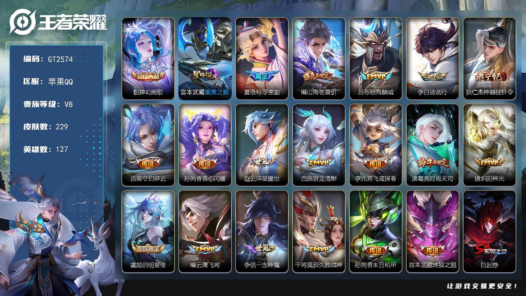 贵族等级: V8 英雄数: 127 皮肤数: 241 珍品传说: 大耳狗之梦