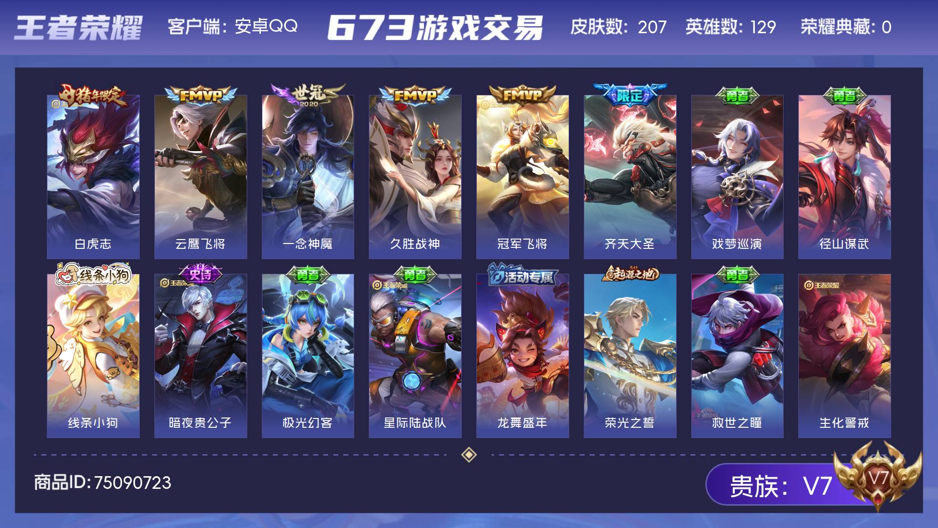 V7 皮肤207 英雄129 至尊星耀 传说6 其他皮肤208