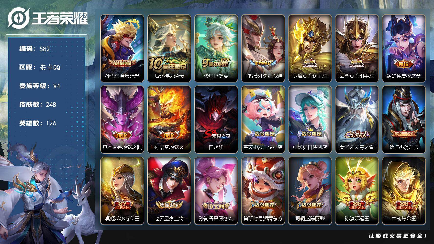 安卓Q-V4-永恒钻石V段位-126英雄-248皮肤-1典藏皮肤-8传说-63