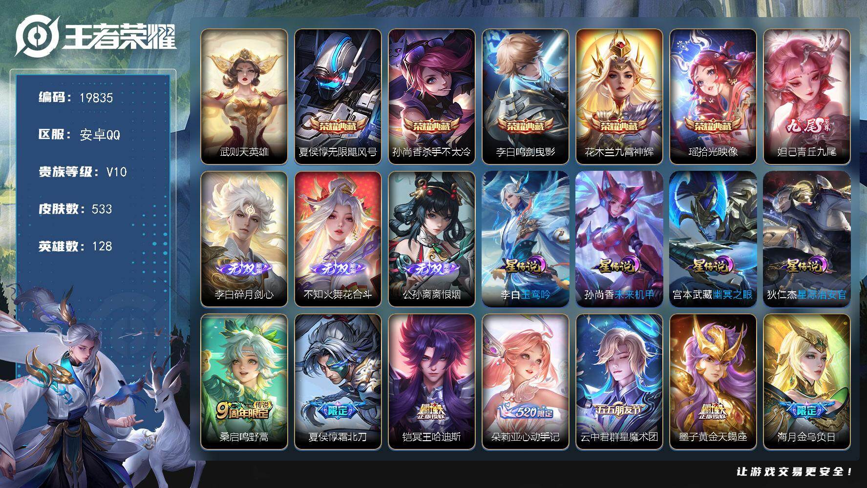 安卓Q-V1-永恒钻石II段位-98英雄-87皮肤-4传说-27史诗【英雄全
