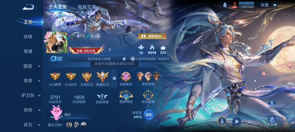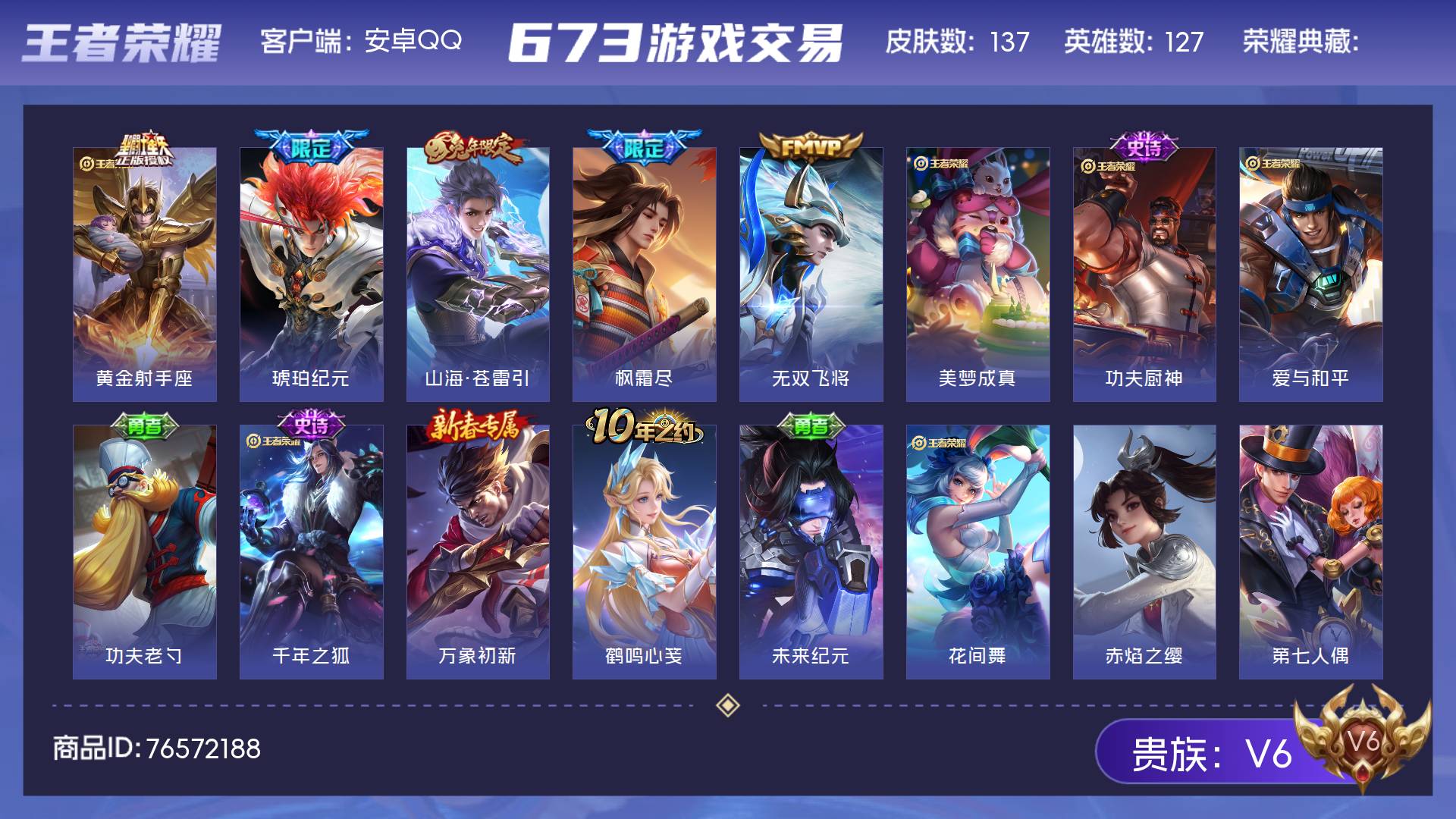 有二次【贵族6 荣耀王者 127英雄 211皮 7传说】安