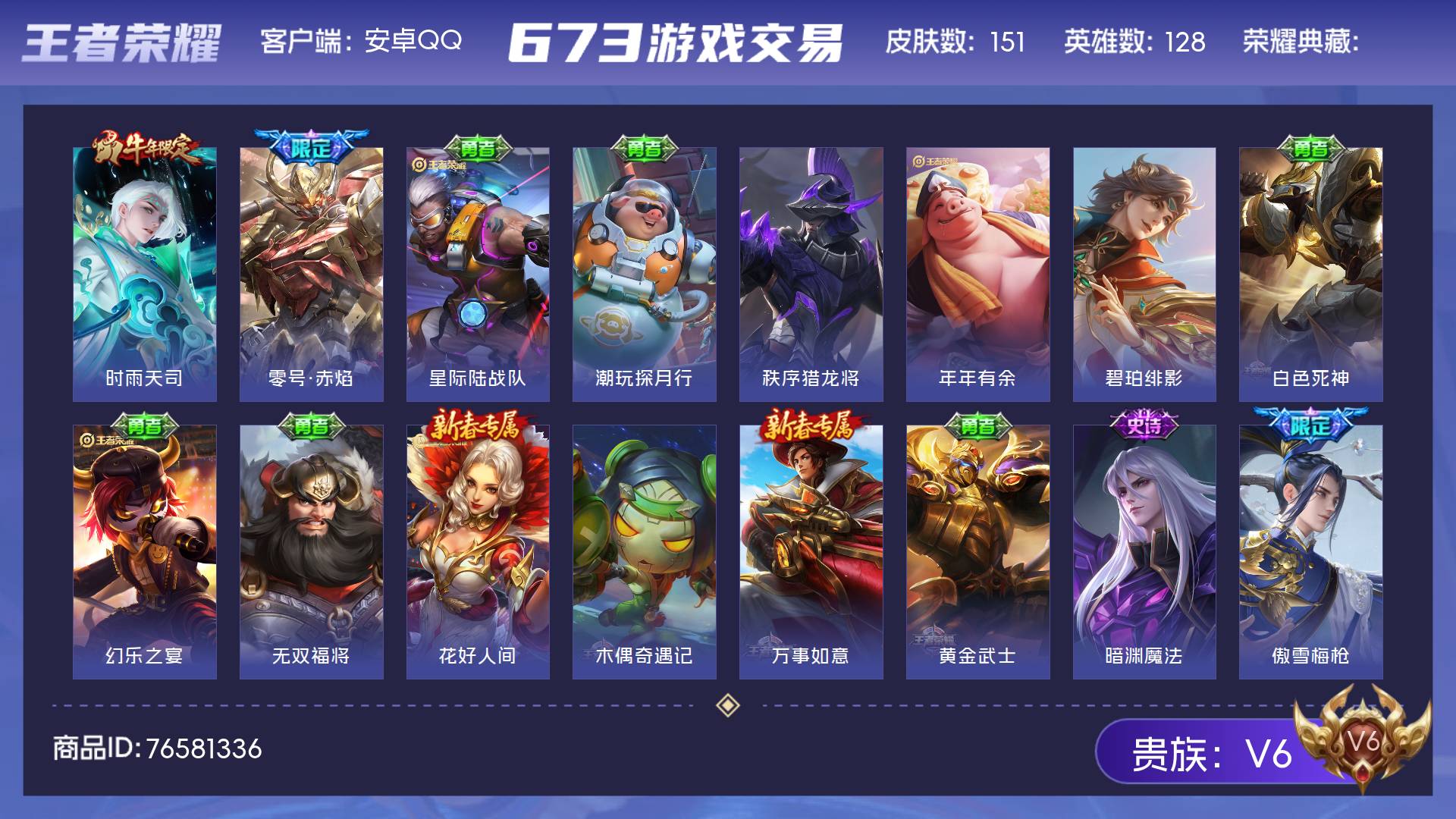 V6 皮肤151 英雄128 永恒钻石 传说2