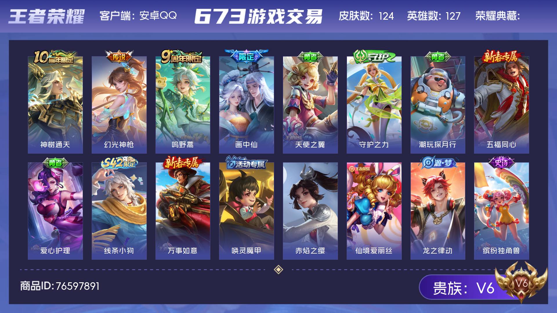 V6 皮肤124 英雄127 至尊星耀 传说4