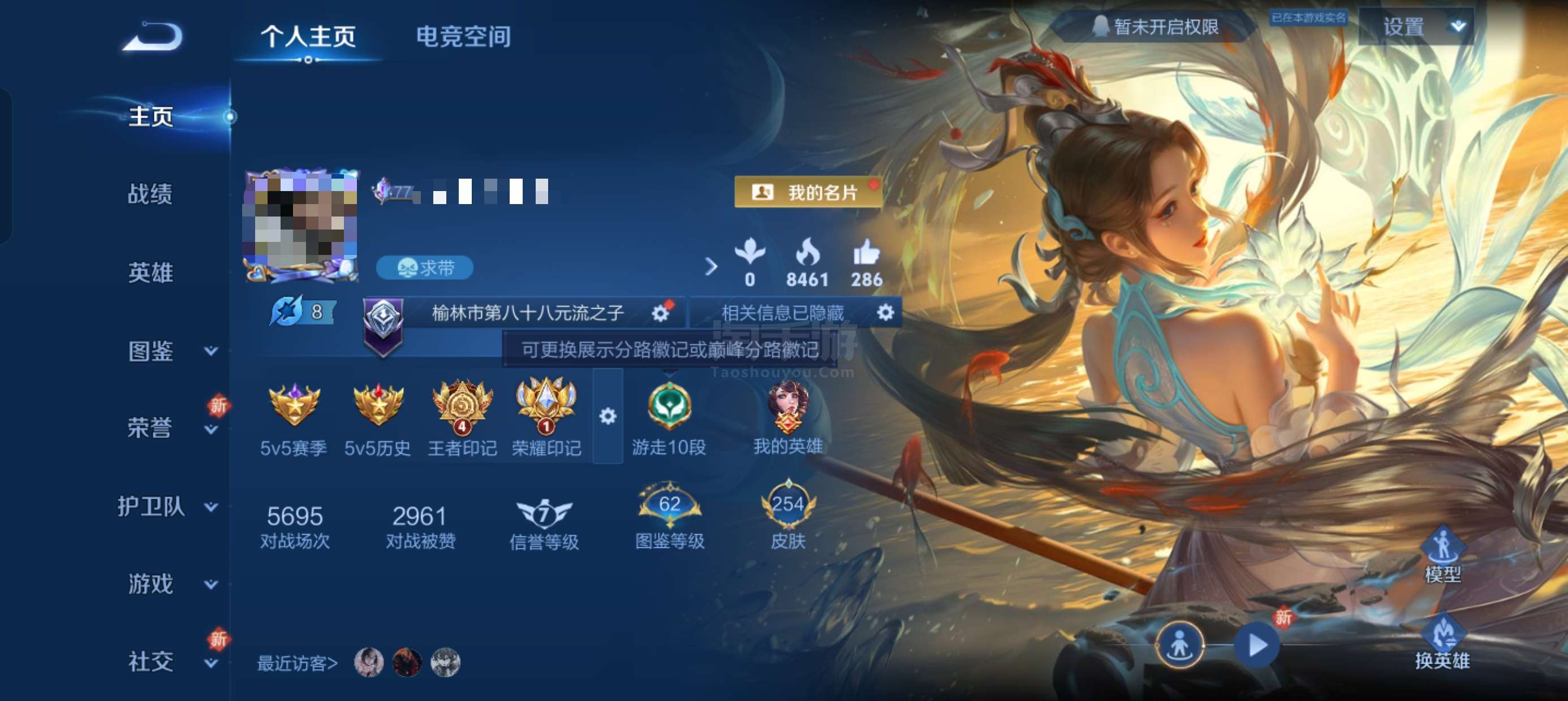 实名: 可修改 贵族等级: V6 英雄数: 123 皮肤数: 139 珍品传说
