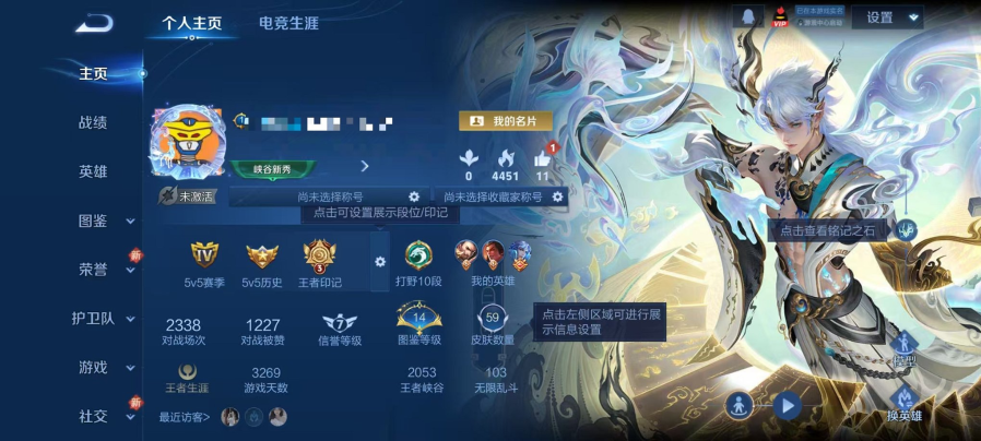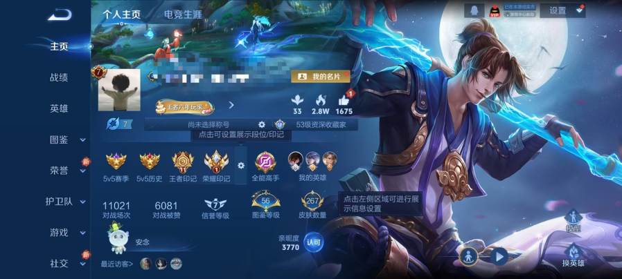 实名: 可修改 贵族等级: V7 英雄数: 113 皮肤数: 115 传说皮: