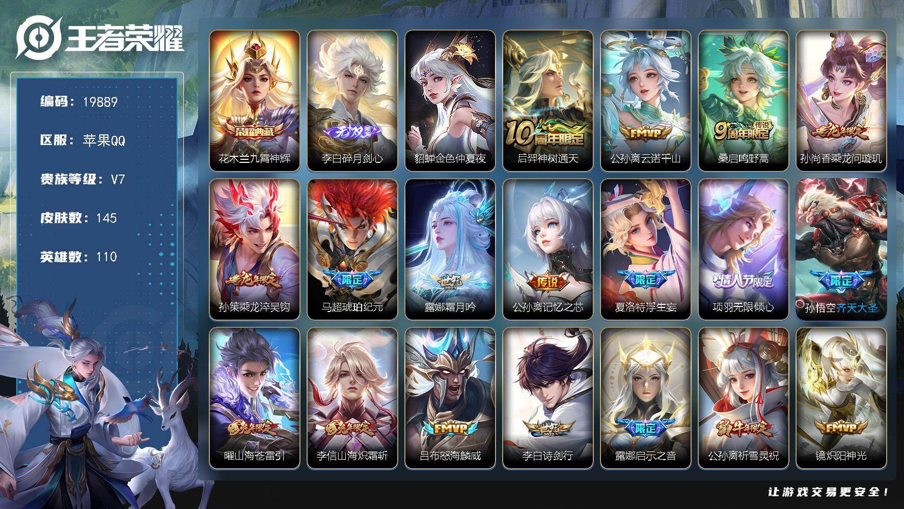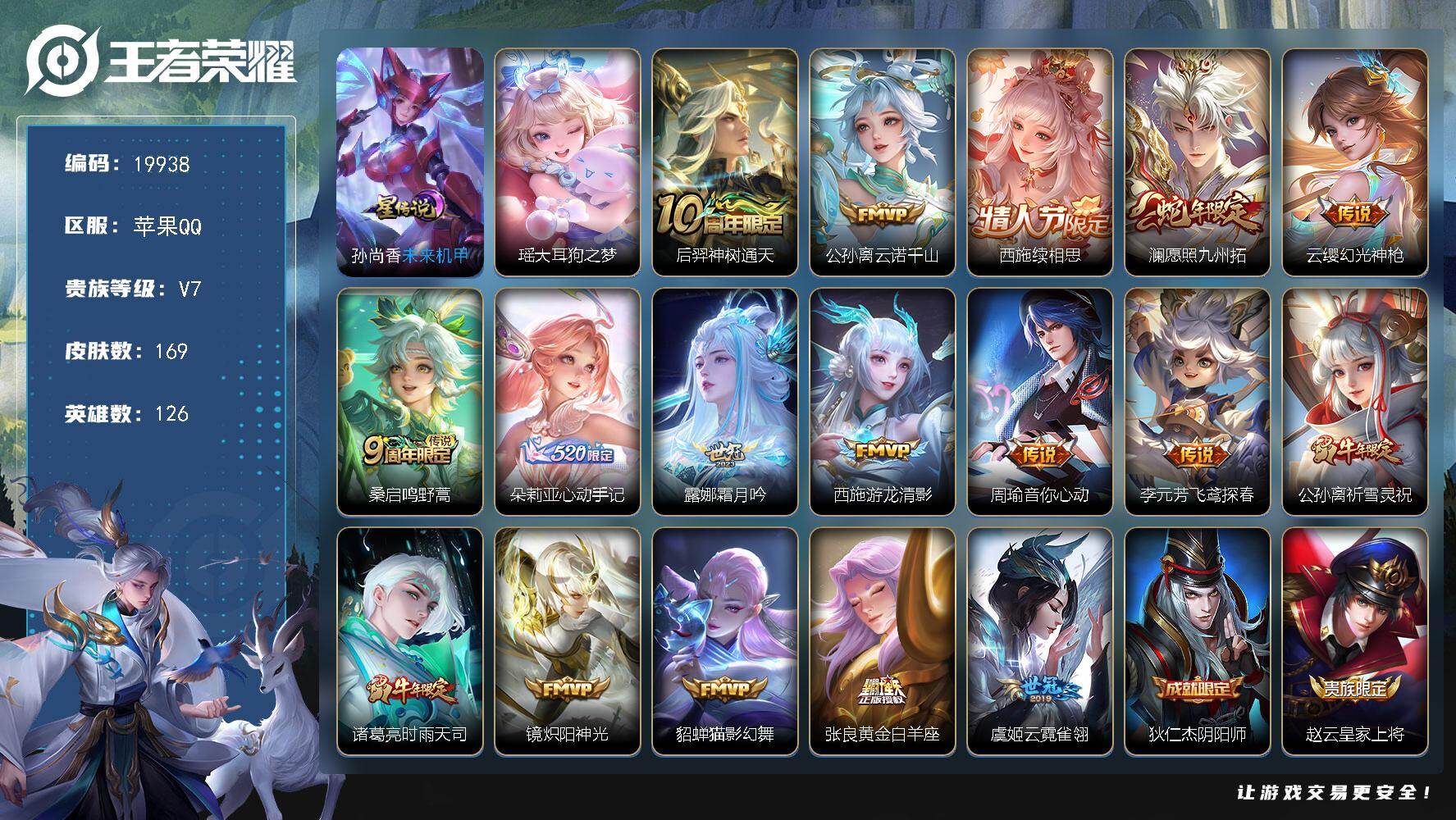 【诸葛亮天机白泽 宫本武藏黑崎一护159皮肤1无双1珍品传说10传说】苹果Q-