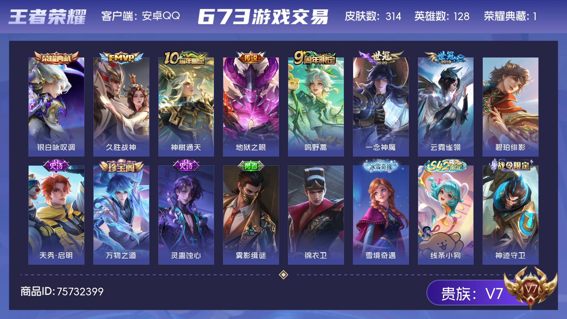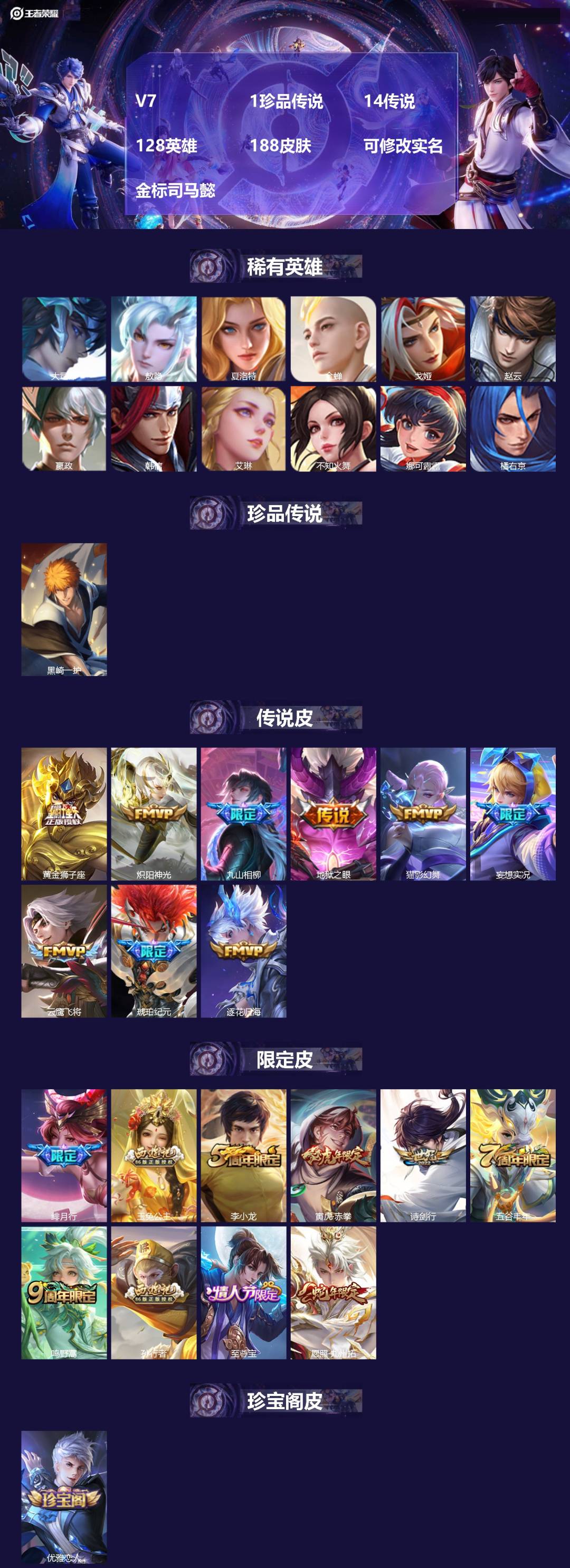 V7 皮肤314 英雄128 非凡王者 荣耀典藏1 星传说1 传说6 其他皮肤311
