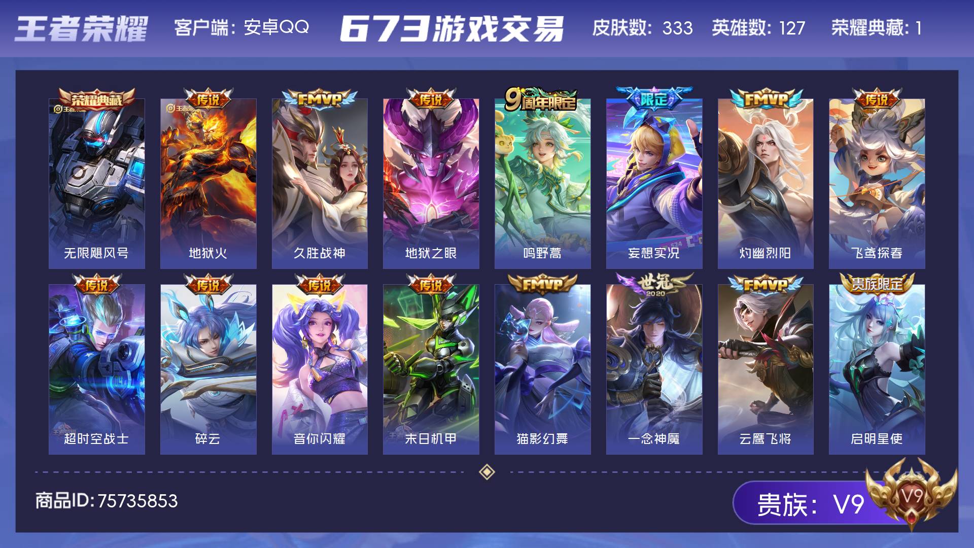 V9 皮肤333 英雄127 至尊星耀 荣耀典藏1 星传说3 传说23 其他皮肤315
