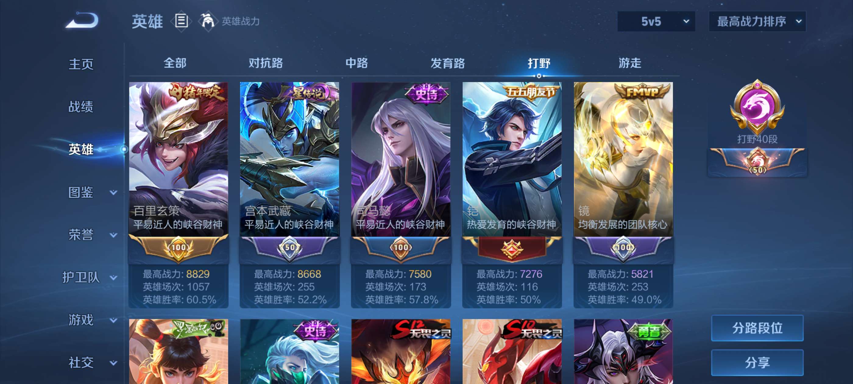 【W4430】3小国标(木兰,杨戬,达摩)-对抗路68段-打野40段-7万战-