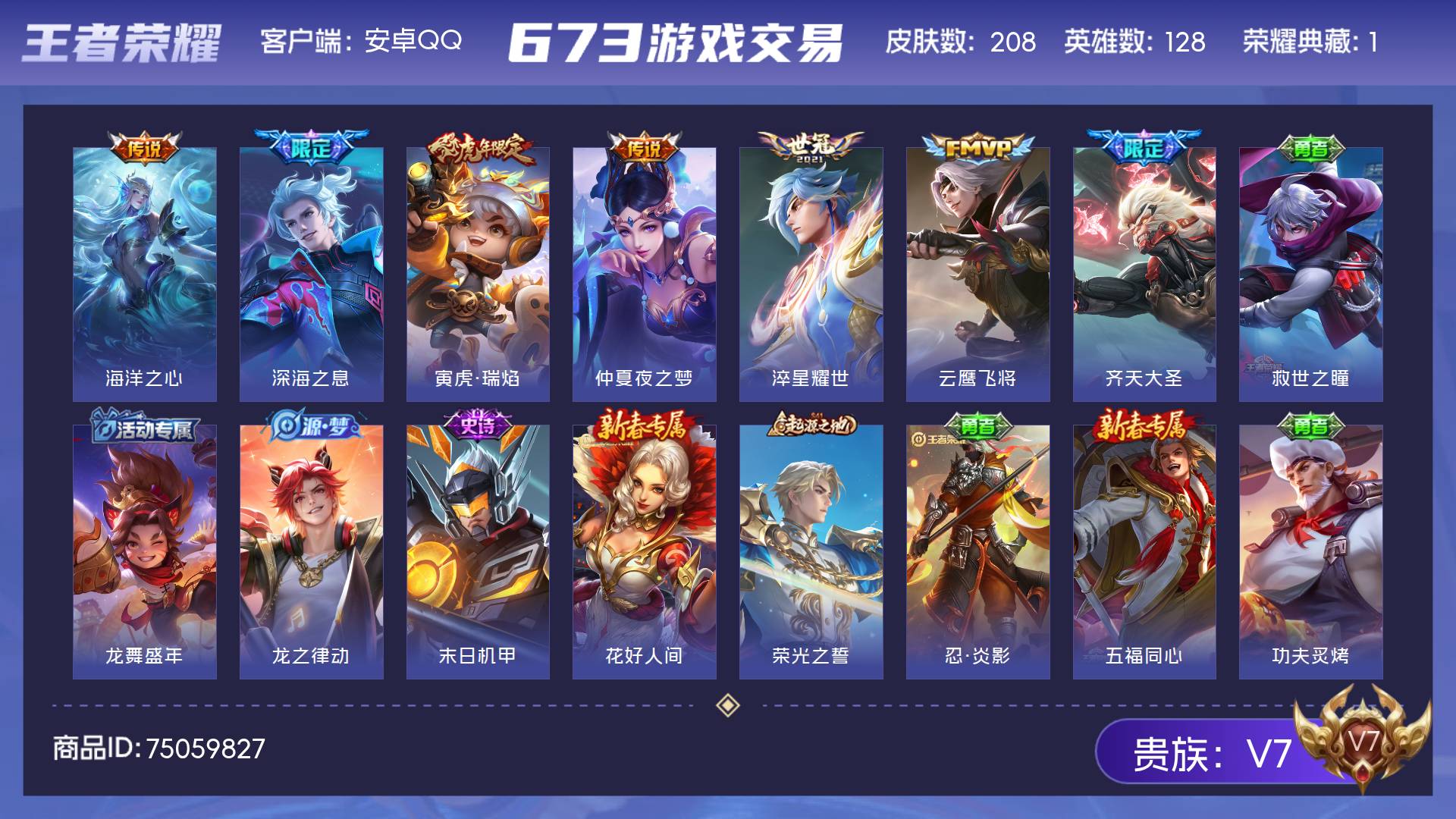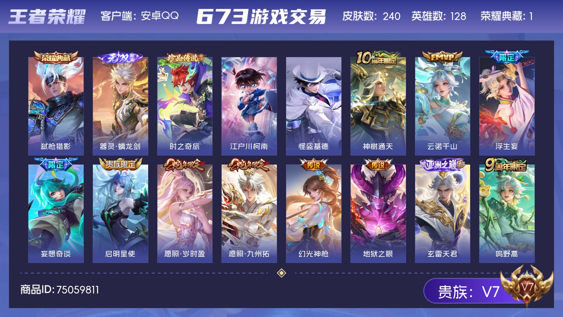 可二次 至尊宝 59皮肤1传说q等级34 -83英雄-