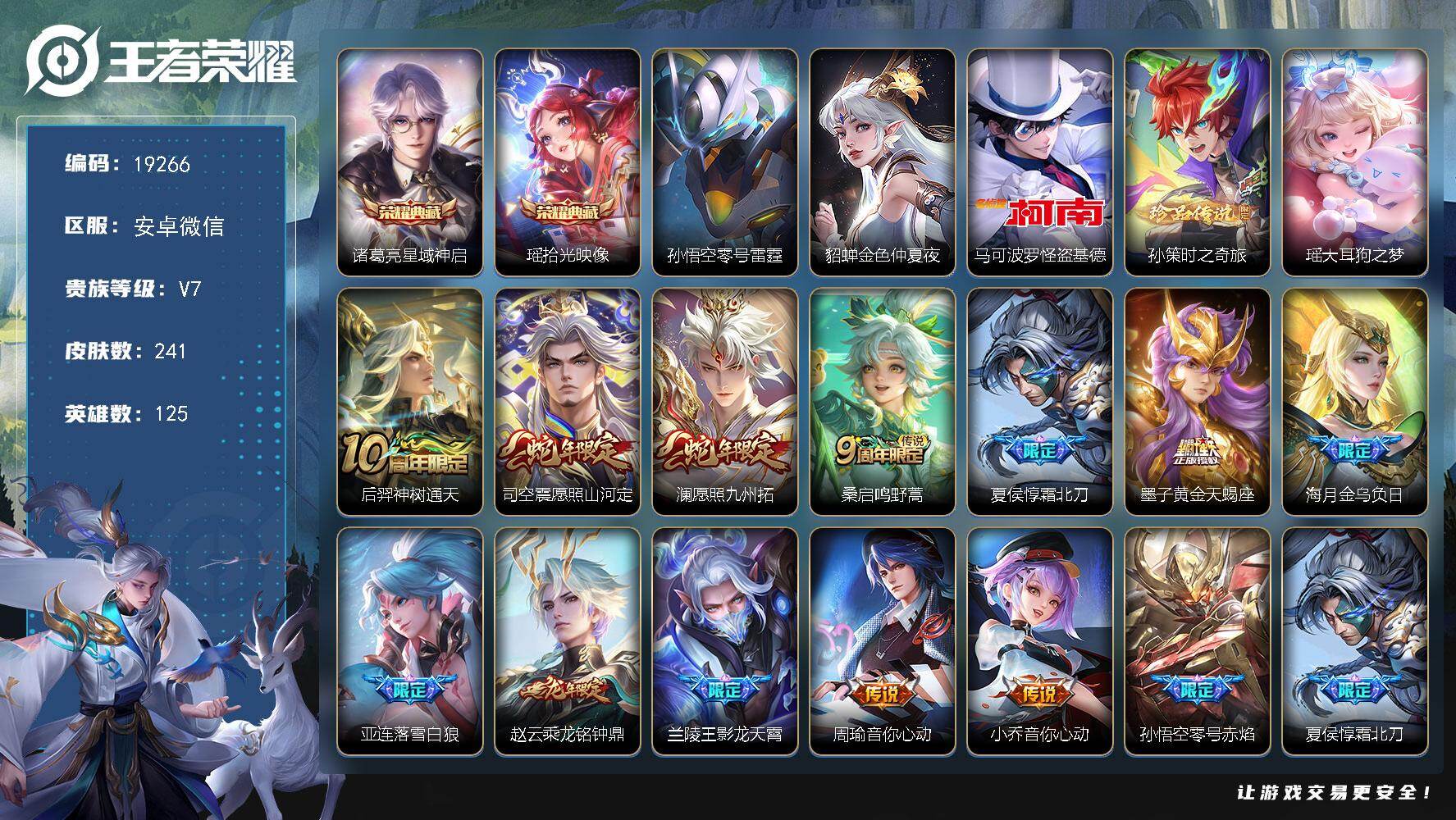 皮肤357 英雄125 传奇王者 荣耀典藏1 无双皮肤1 珍品传说2 传说20 其他皮肤127-可小刀退游国服账号有魔方二次还有半个月