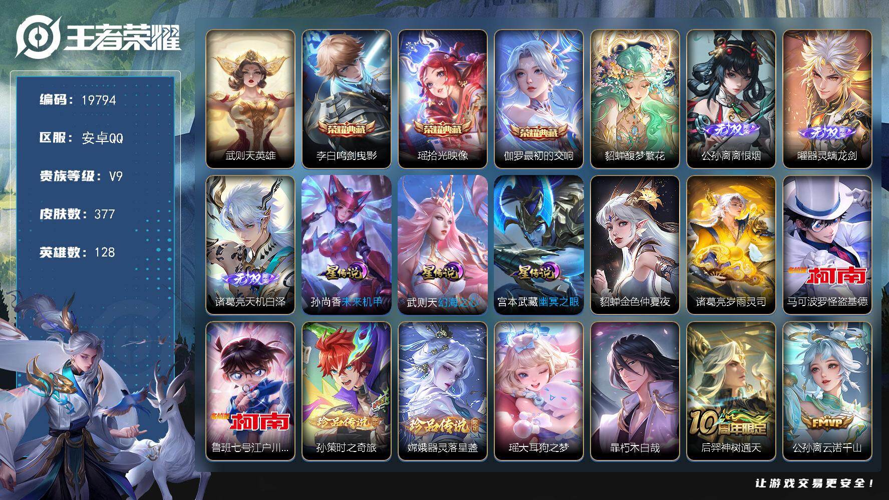 可换绑【V9精品号 公孙离全皮 貂蝉慕夏 4典藏含武则天英雄 3无双 6珍品