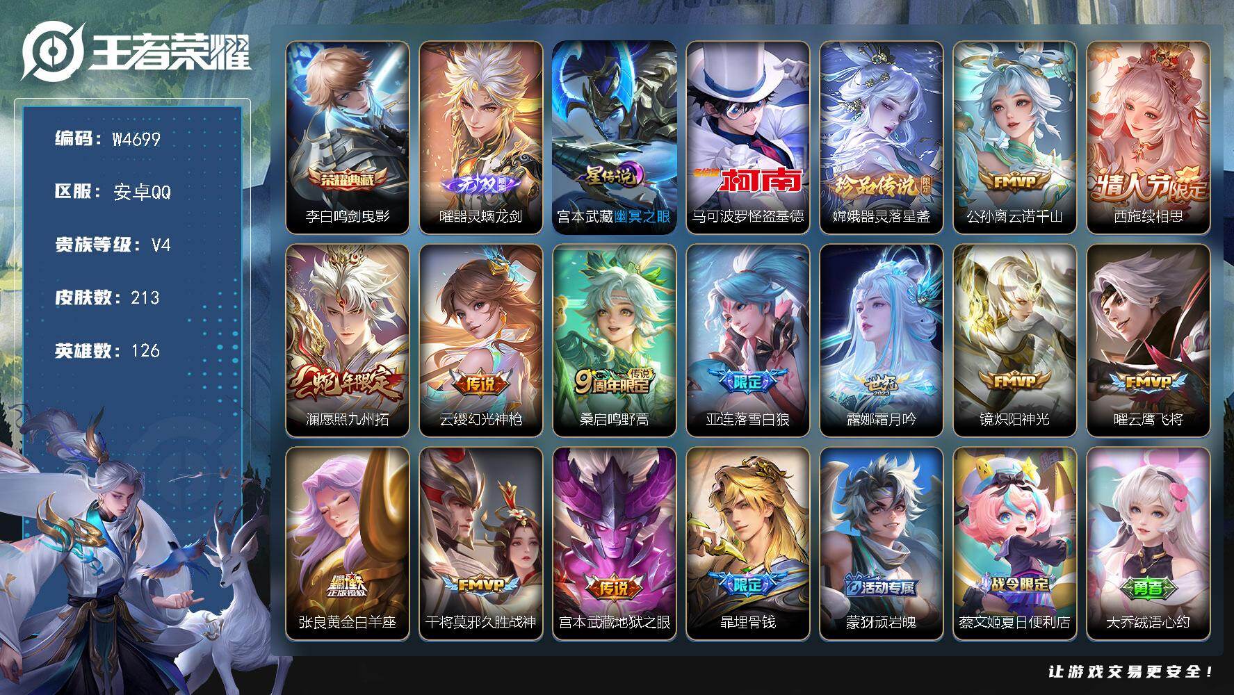 【W4706】社交限制-安卓Q-无二次-贵6-125英雄-123皮肤-4传说-