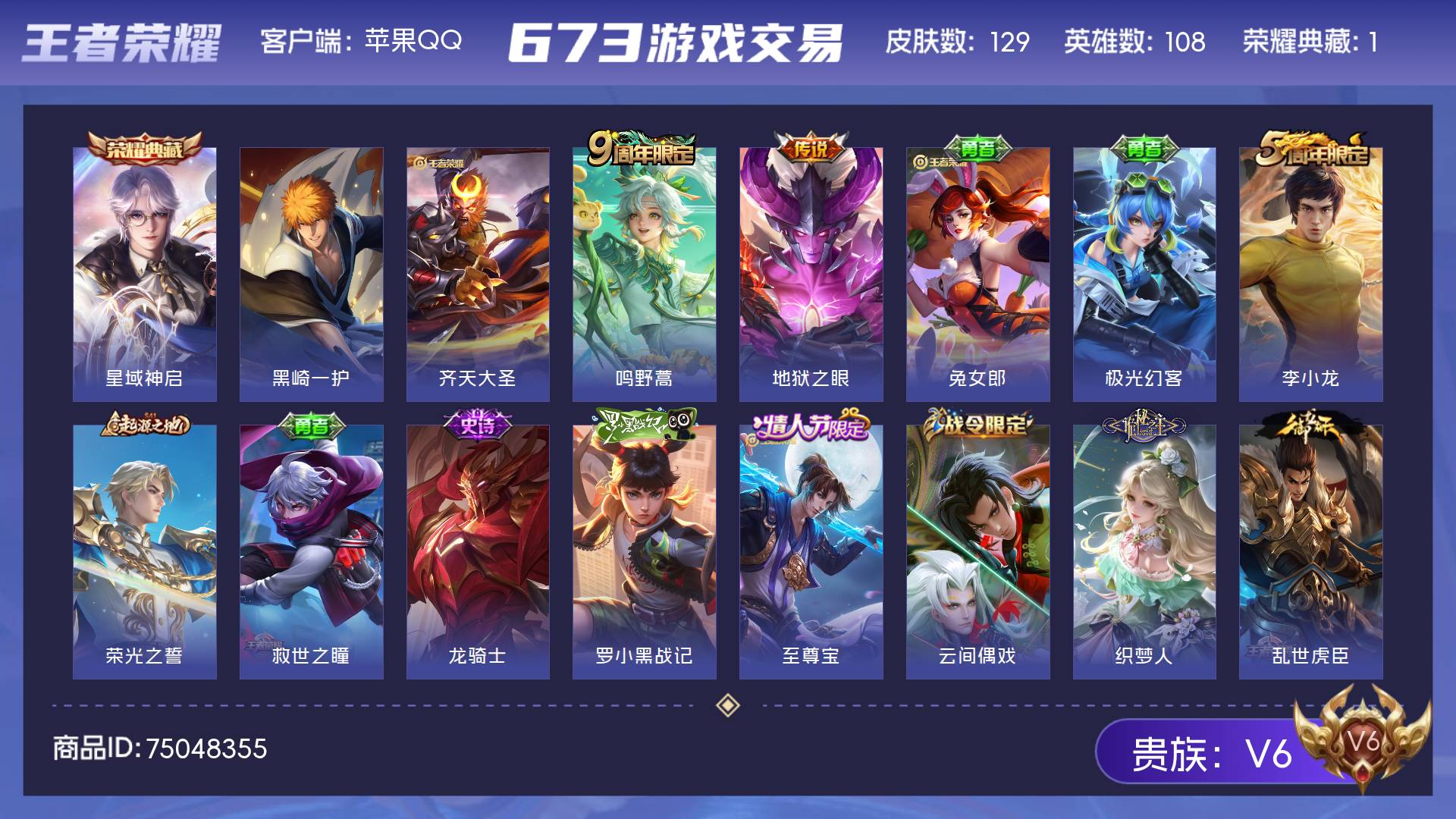 皮肤129 英雄108 至尊星耀 荣耀典藏1 珍品传说1 传说3 其他皮肤130-iOS 129皮肤1典藏1珍品传说2传说2天幕 星域神启 黑崎一护+天幕 至尊