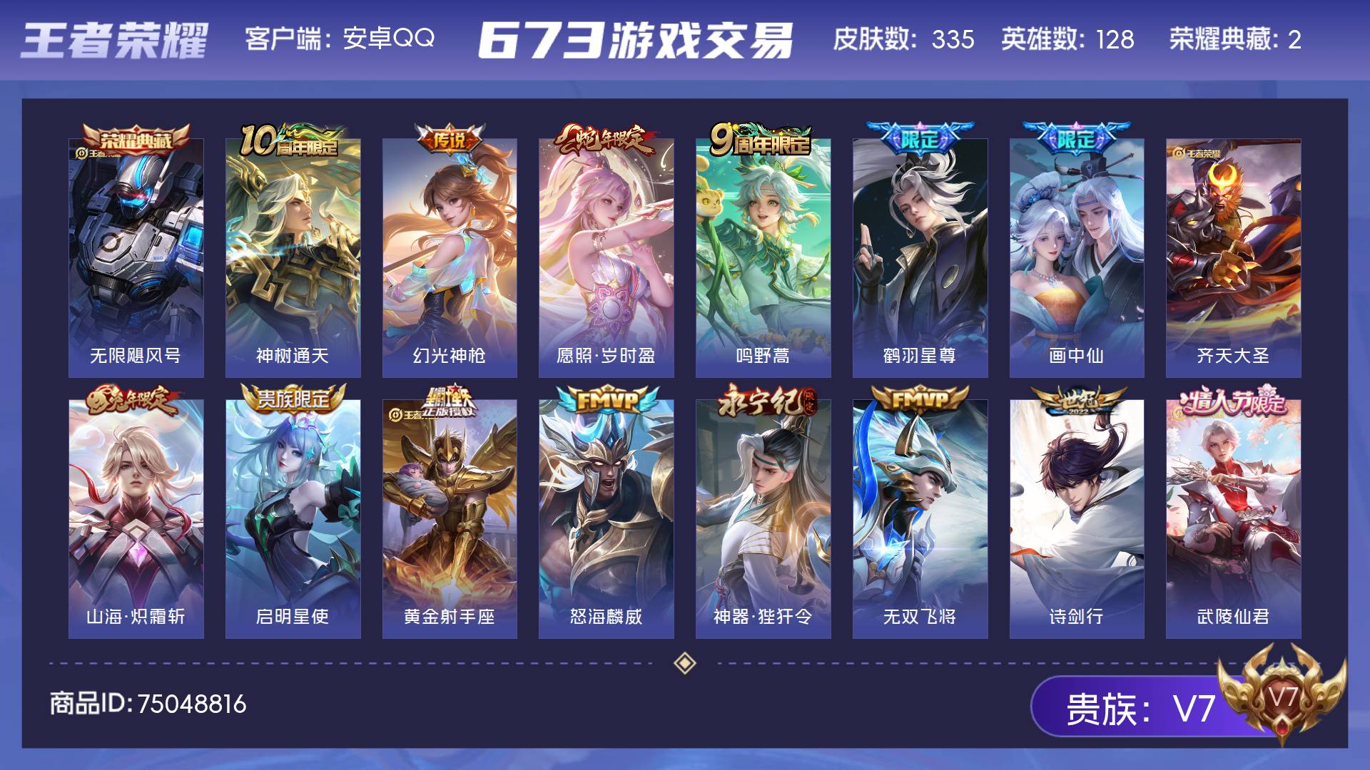 皮肤335 英雄128 无双王者 荣耀典藏2 传说22 其他皮肤318-【335皮1典藏22传说 无限飓风号 画中仙 鹤羽星尊 神器狴犴令 寅虎瑞焰