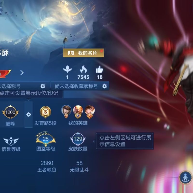 王者荣耀射手号 现巅峰2052两典藏一珍品皮肤碎片两百多荣耀水晶275幸运值