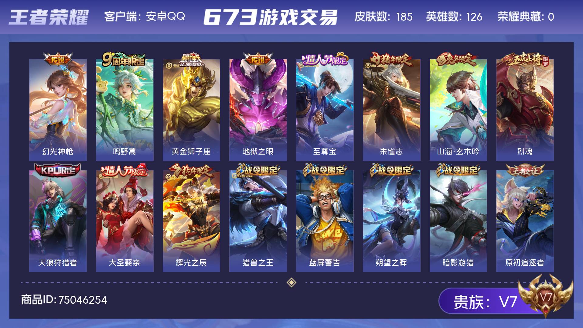 V7 皮肤185 英雄126 尊贵铂金 星传说1 传说4 其他皮肤69