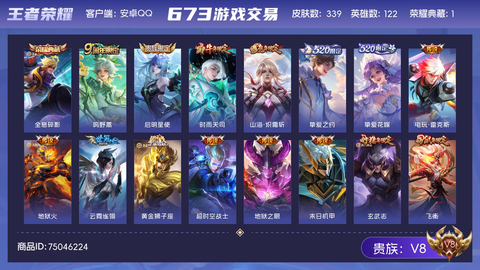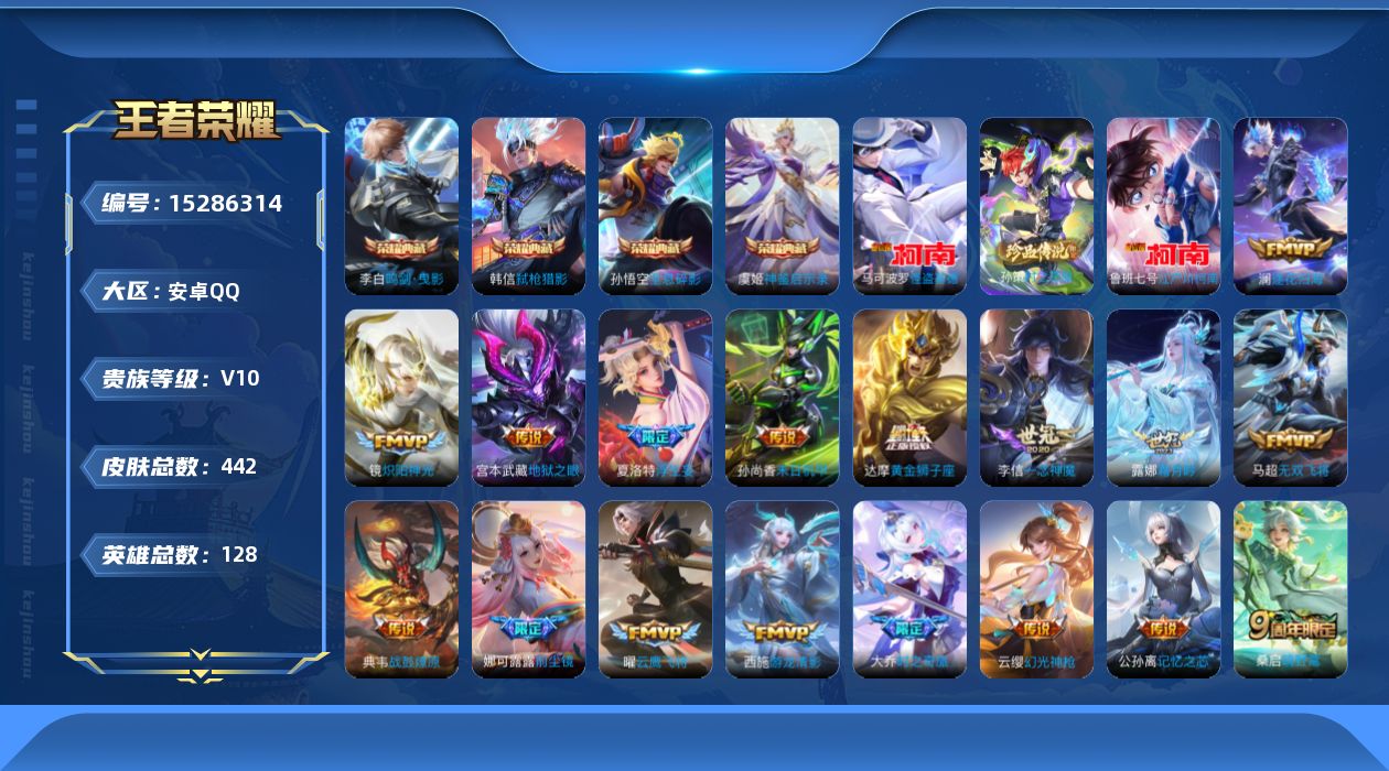 WZ1209安卓Q/可二次/英雄127/皮肤442【段位】荣耀王者/v9