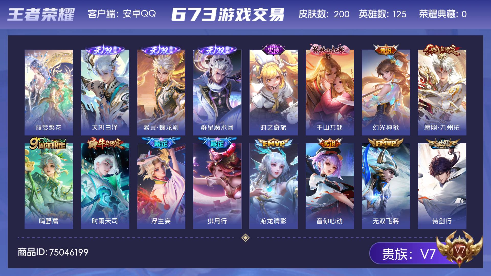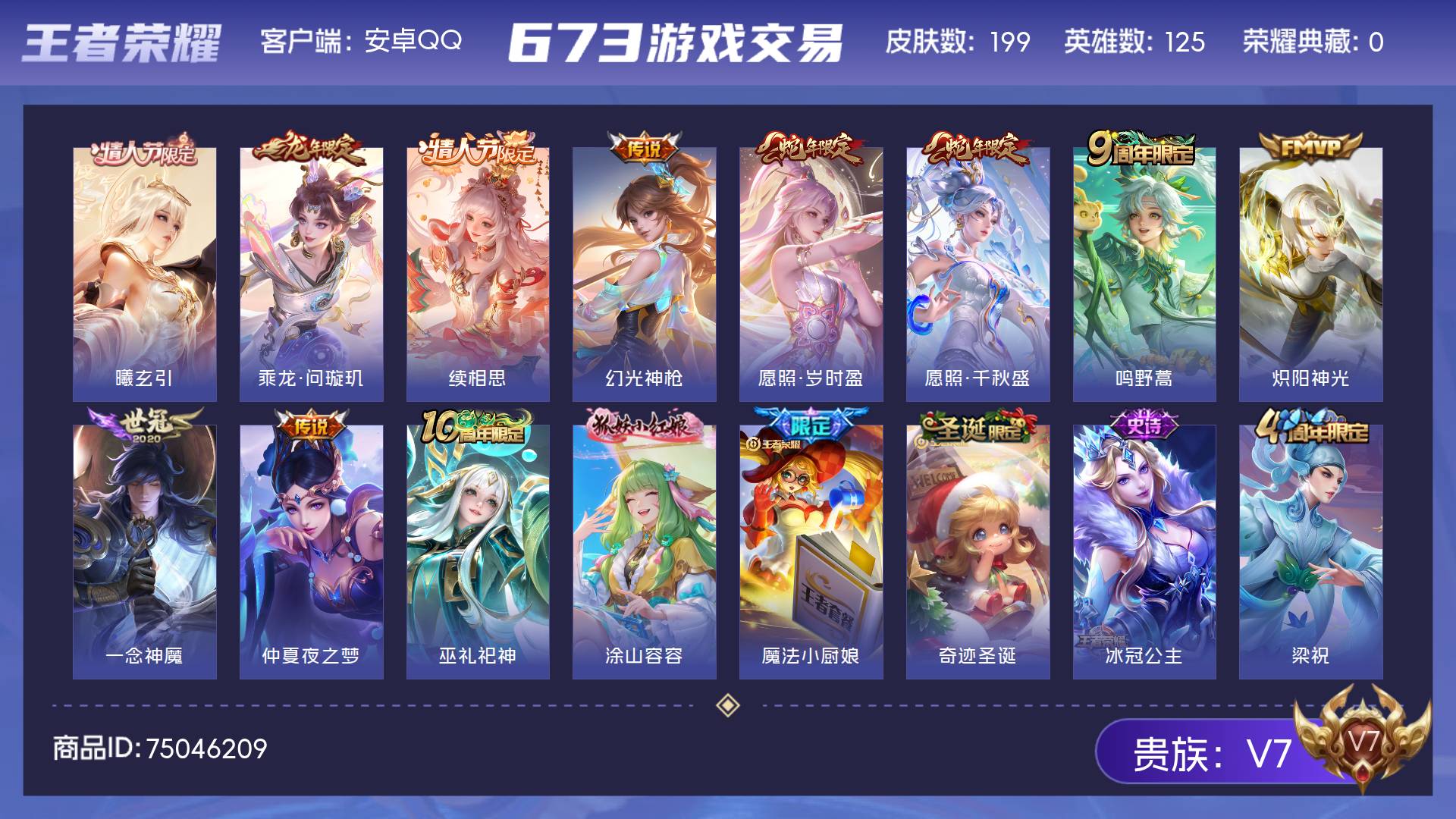 皮肤199 英雄125 最强王者 传说10 其他皮肤57-【女号V7 10传说1星元 金色仲夏夜】安卓Q-199皮肤