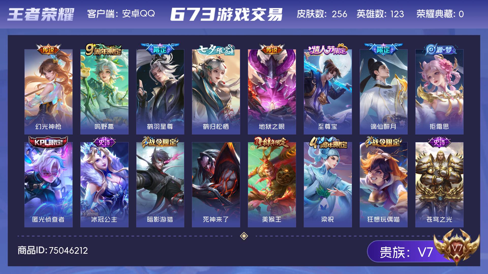 皮肤256 英雄123 至尊星耀 传说5 其他皮肤100-【256皮肤V7 5传说1星元 至尊宝】安卓Q-256皮肤