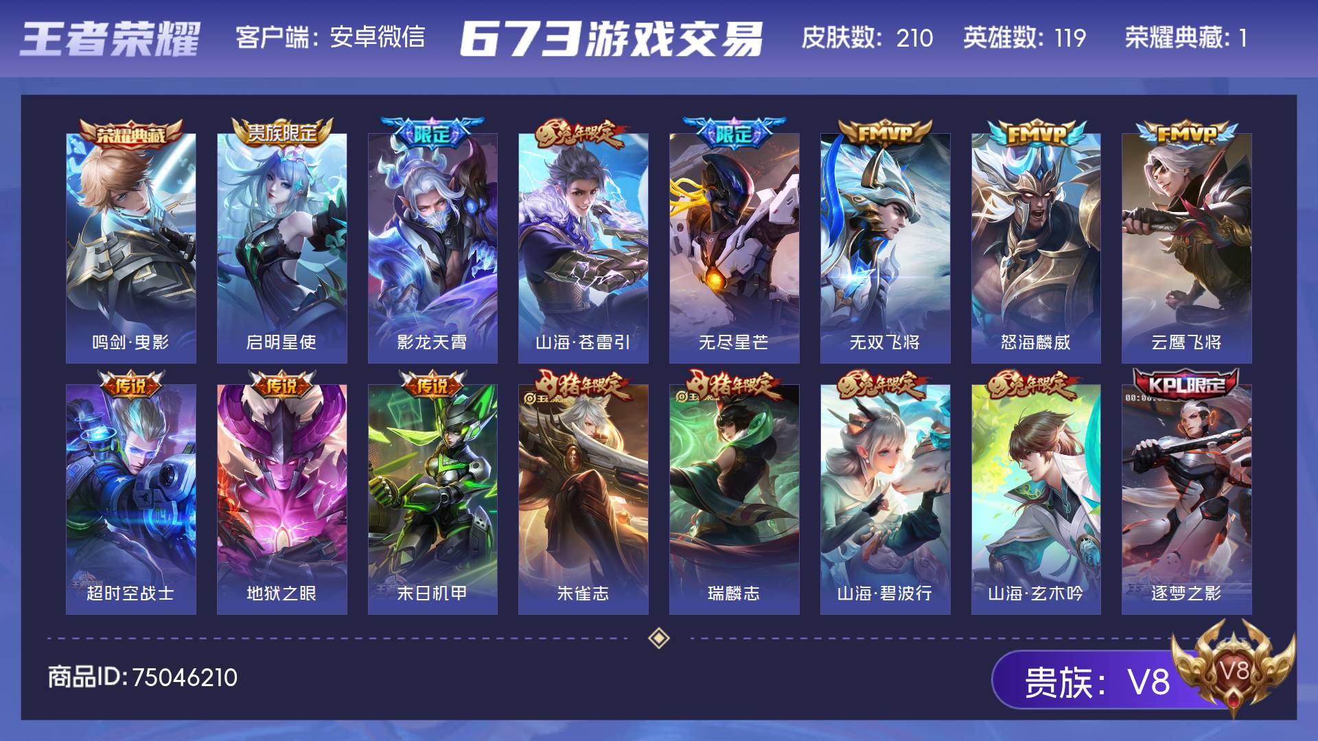 皮肤210 英雄119 永恒钻石 荣耀典藏1 传说10 其他皮肤91- 【v8!210皮肤热门号1典藏10传说】安卓WX