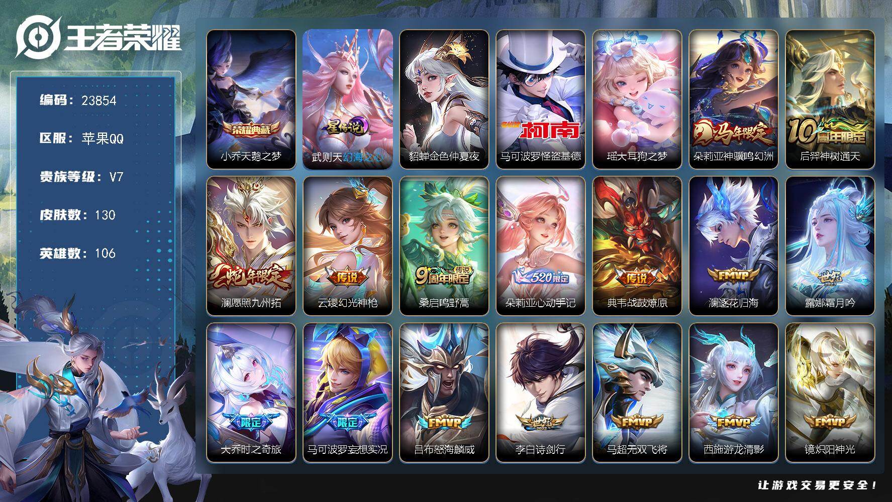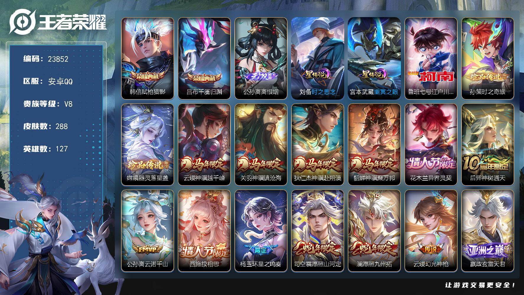 可换绑【精品小号·鹤羽星尊·情人节虞姬·兔年李信·烈魂·至尊宝】3076星币