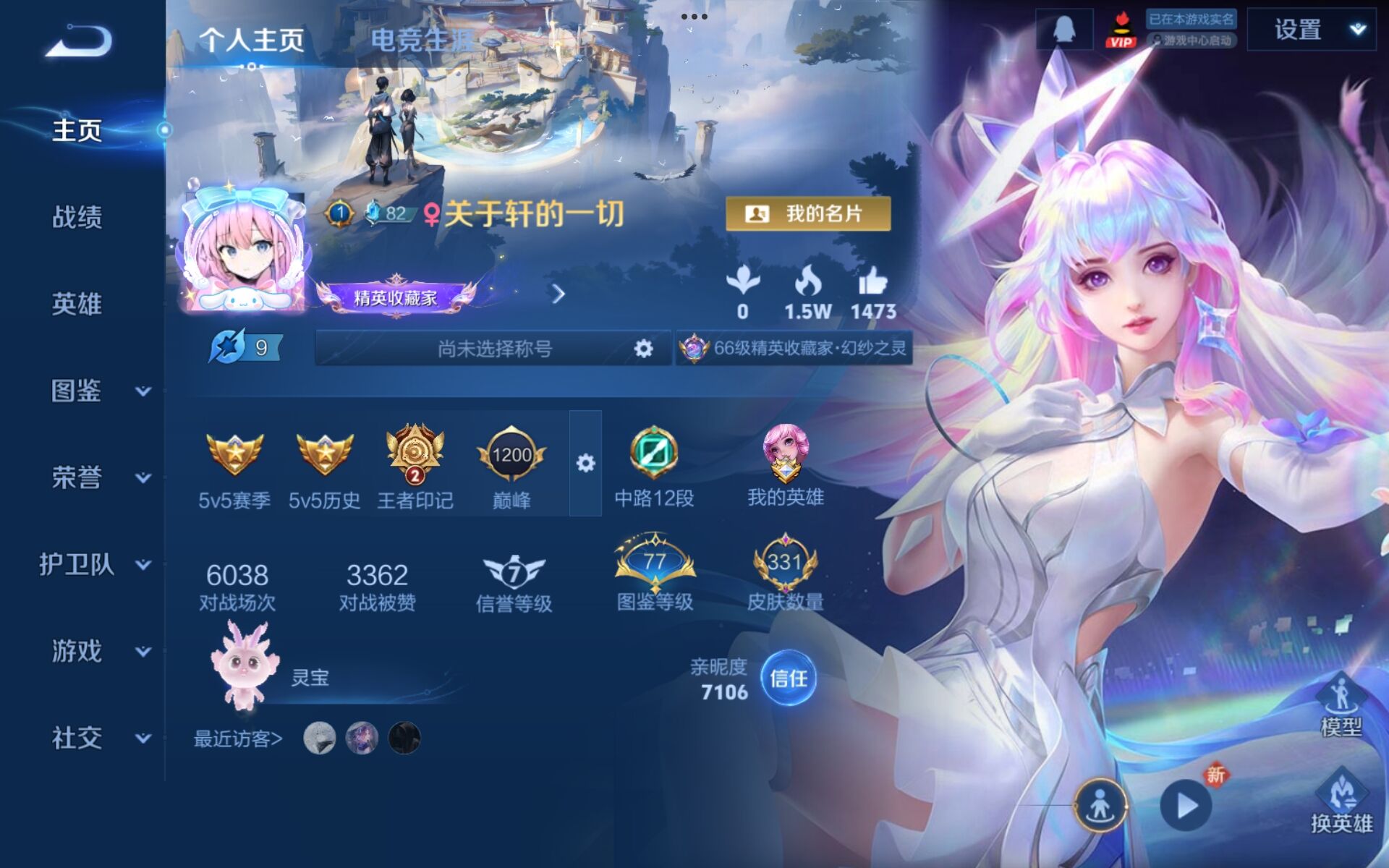 实名: 可修改 贵族等级: V6 英雄数: 113 皮肤数: 129 星传说: