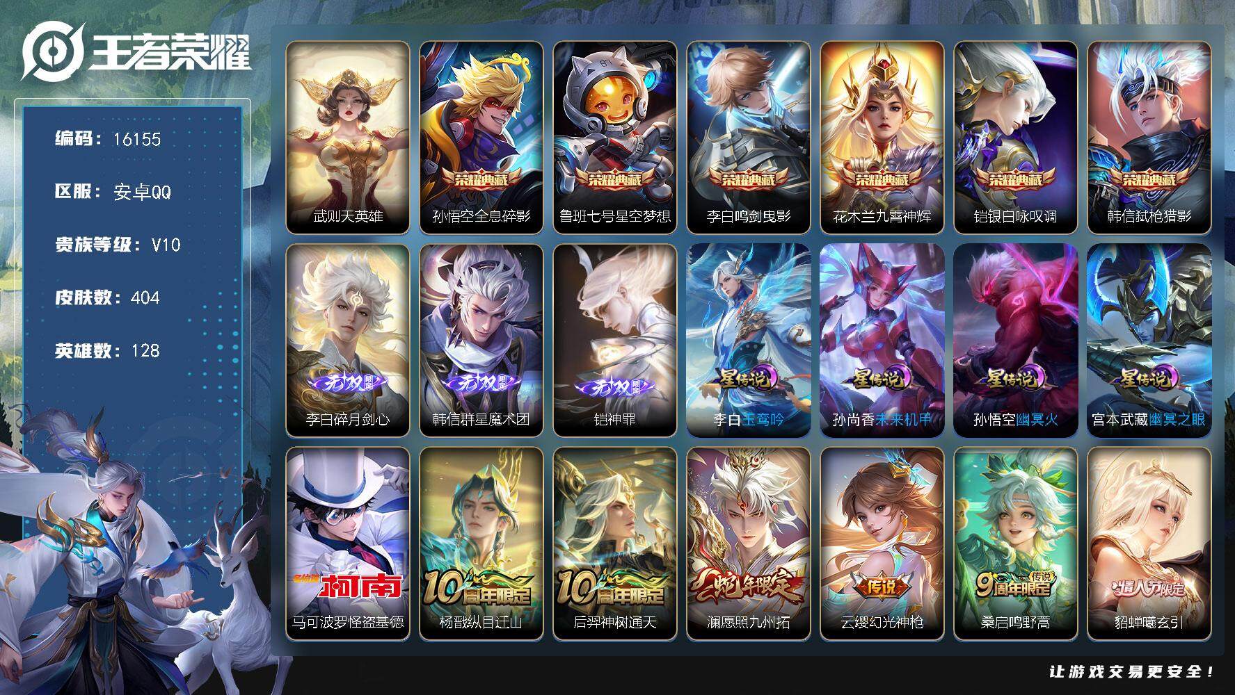 安卓QQ-1典藏-7传说-279皮肤-126英雄-荣耀黄金-一典藏,七传说多款史诗,皮肤多