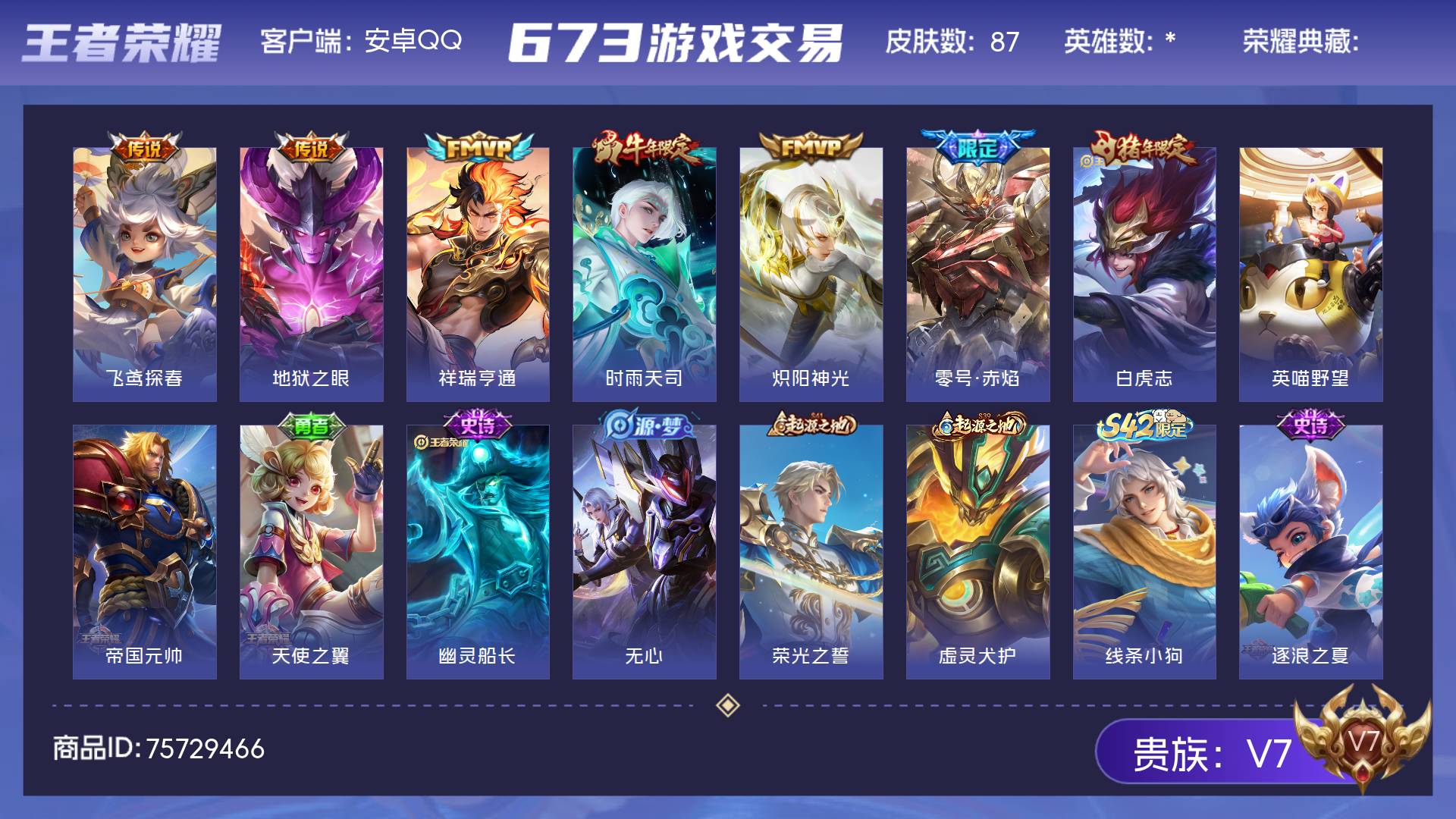 V7 皮肤87 英雄* 绝世王者 传说7 其他皮肤86